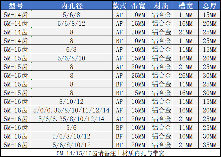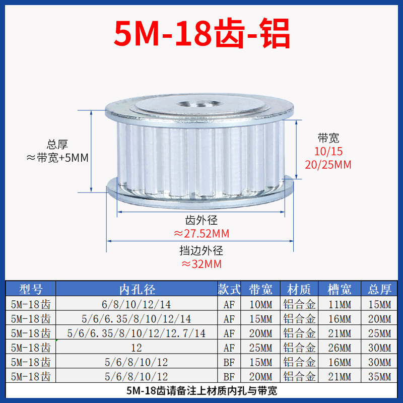 • 5M-18 치아-20 대역폭-알루미늄