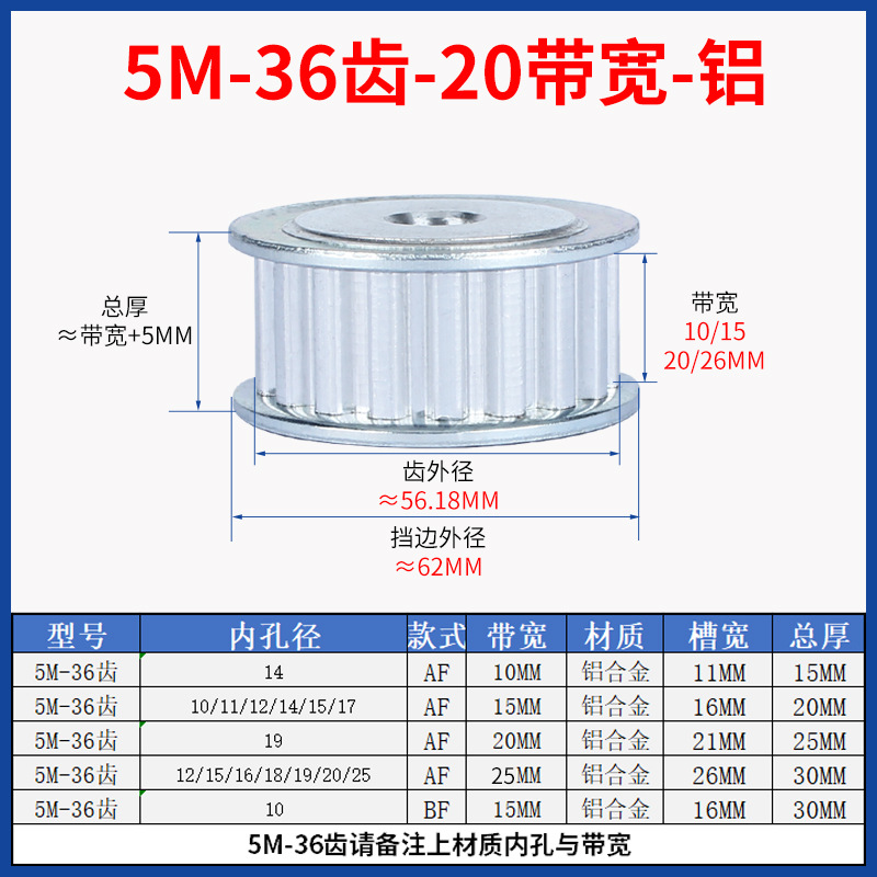 • 5M-36 치아-20 대역폭-알루미늄