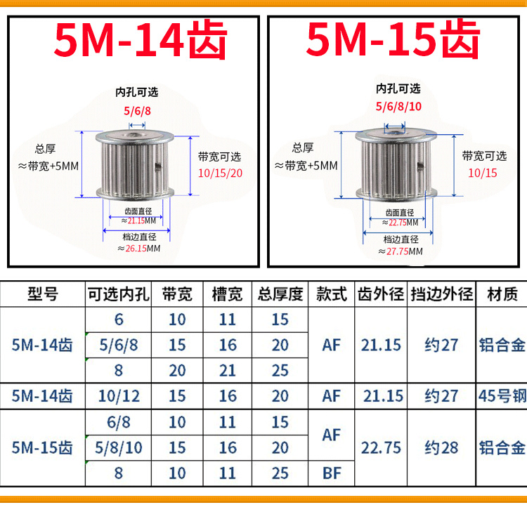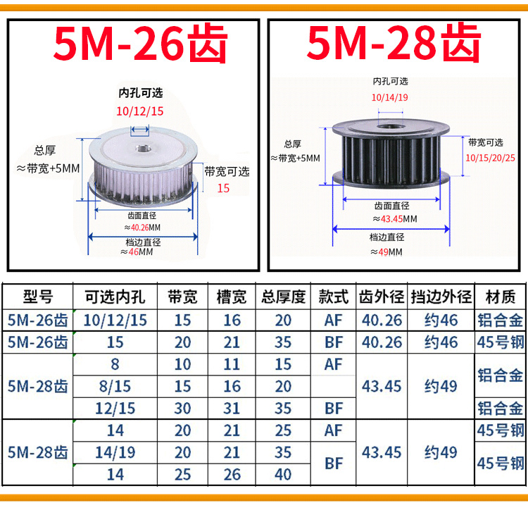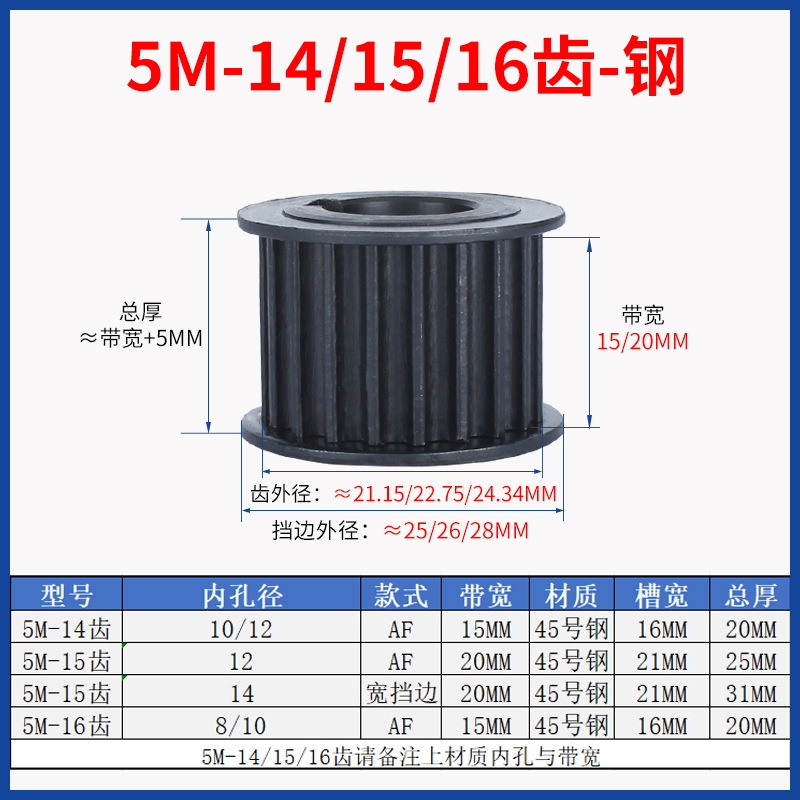 동기 풀리 5M10/14/15/16/18/20/24/25/28/30-100 치아 강철 알루미늄 도르래