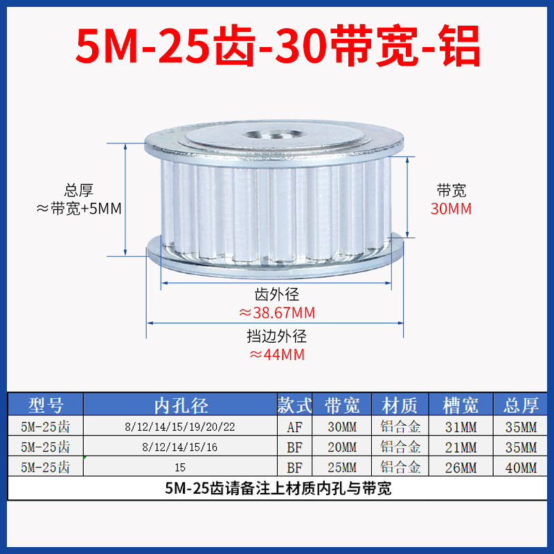 • 5M-25 치아-30 대역폭-알루미늄
