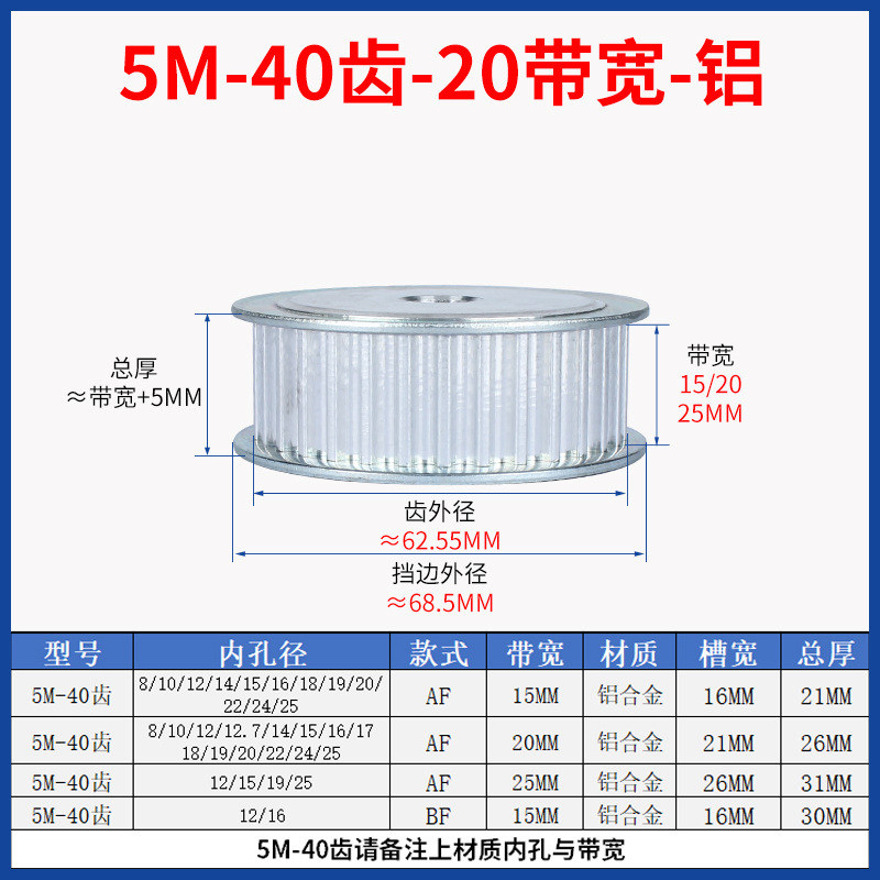 • 5M-40 치아-20 대역폭-알루미늄