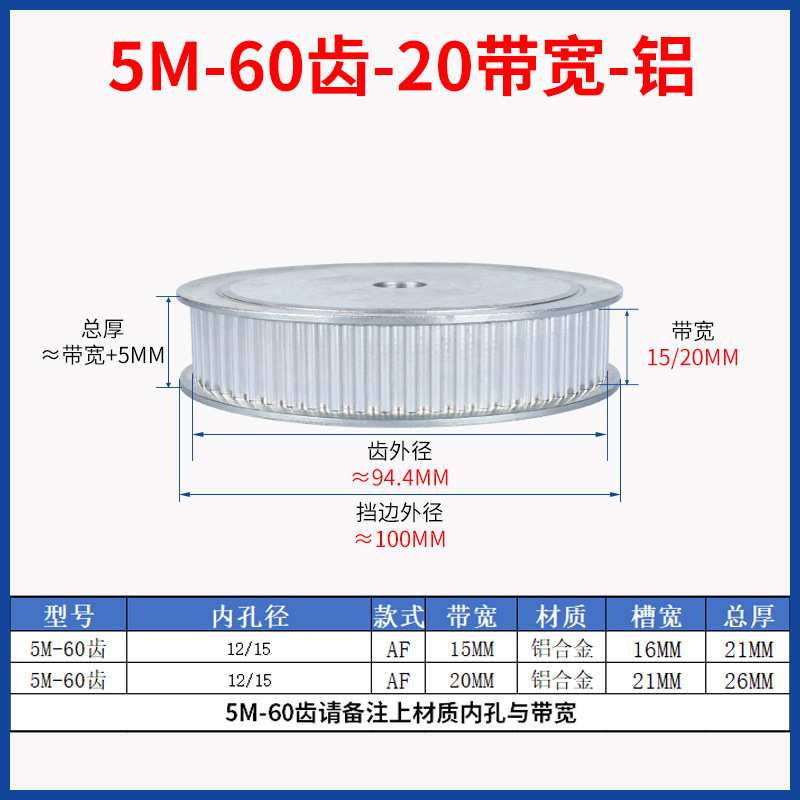 • 5M-60 치아-20 대역폭-알루미늄