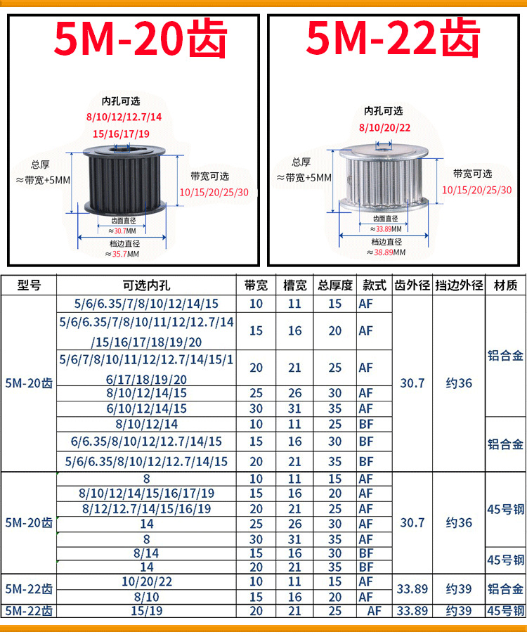 • 5M-22 치아-20 대역폭-알루미늄