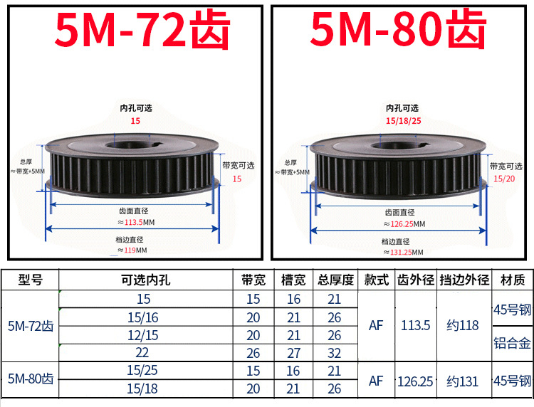 • 5M-45 치아-강철/알루미늄