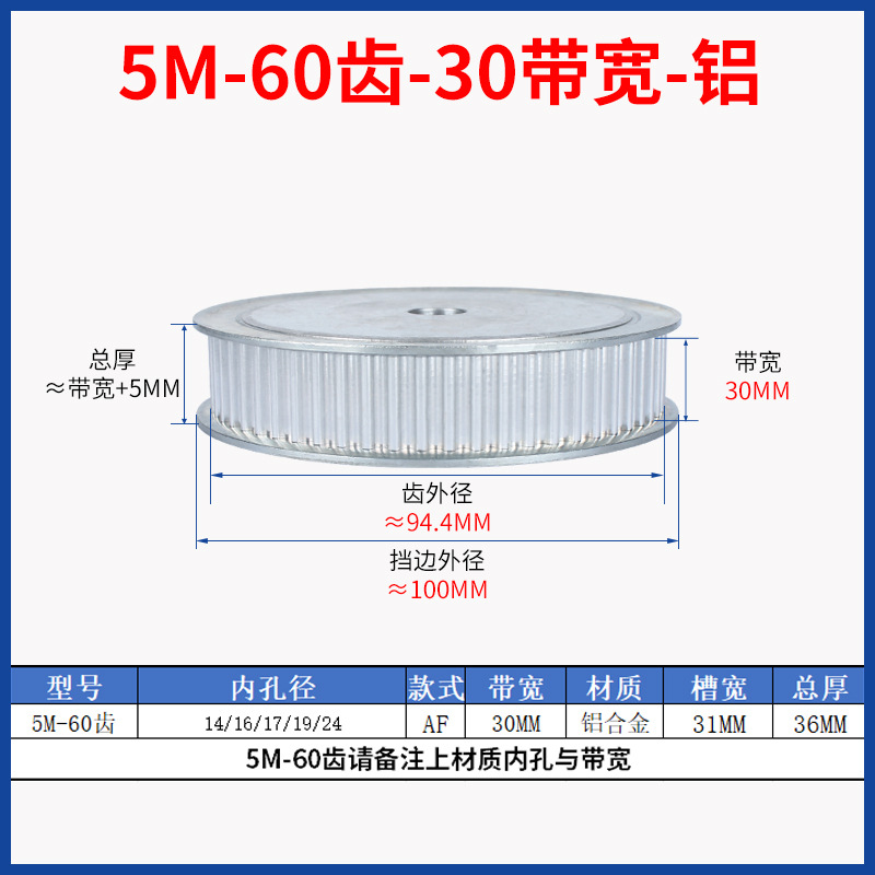 • 5M-60 치아-30 대역폭-알루미늄