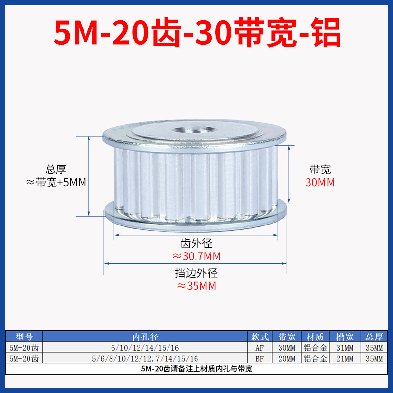 • 5M-30 치아-20 대역폭-알루미늄