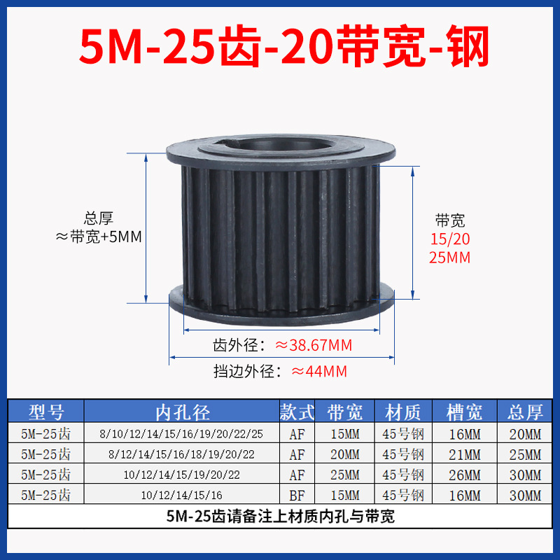 • 5M-25 치아-20 대역폭-강철