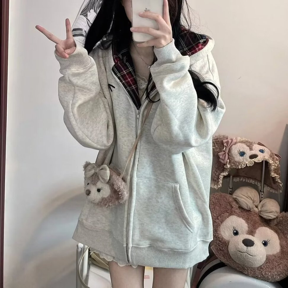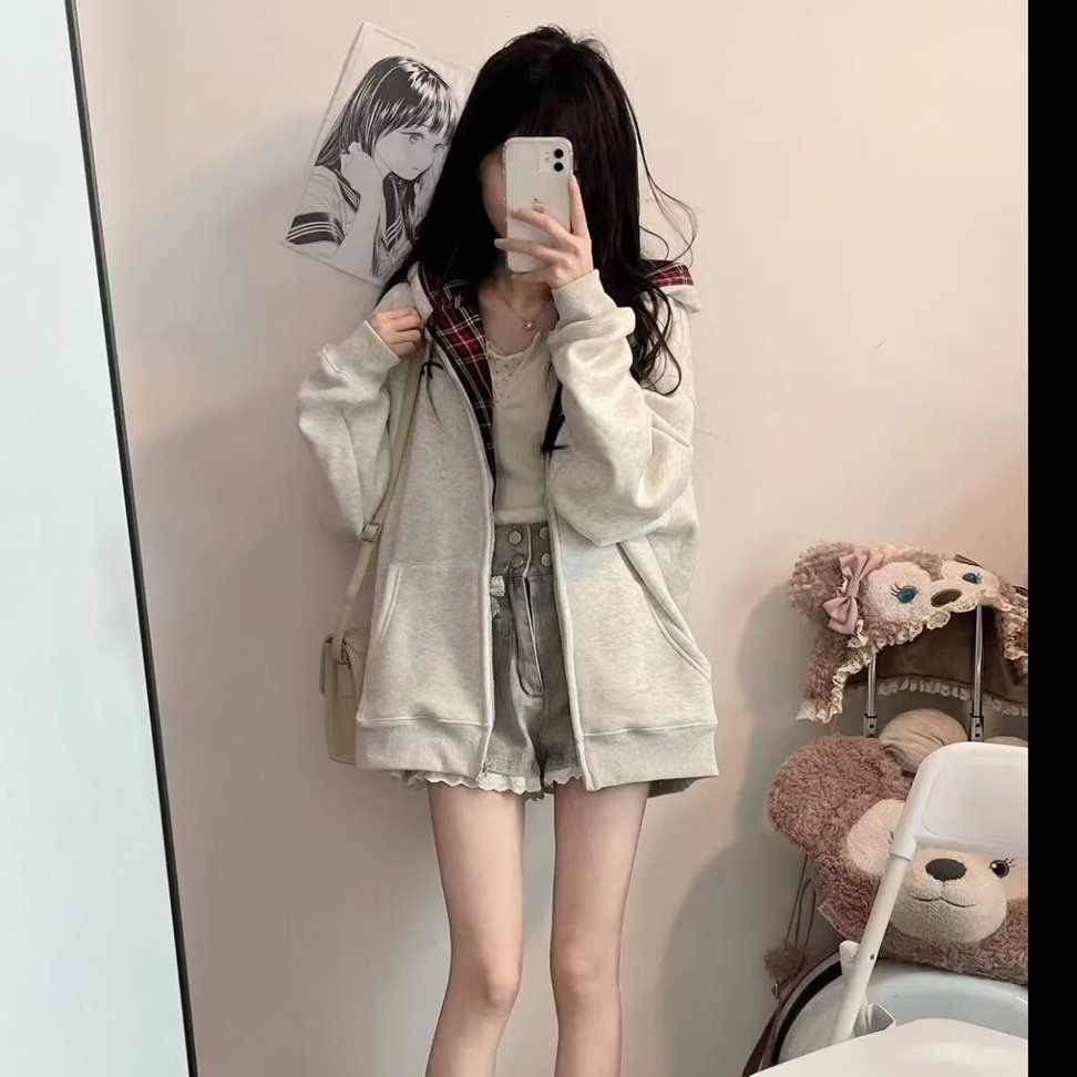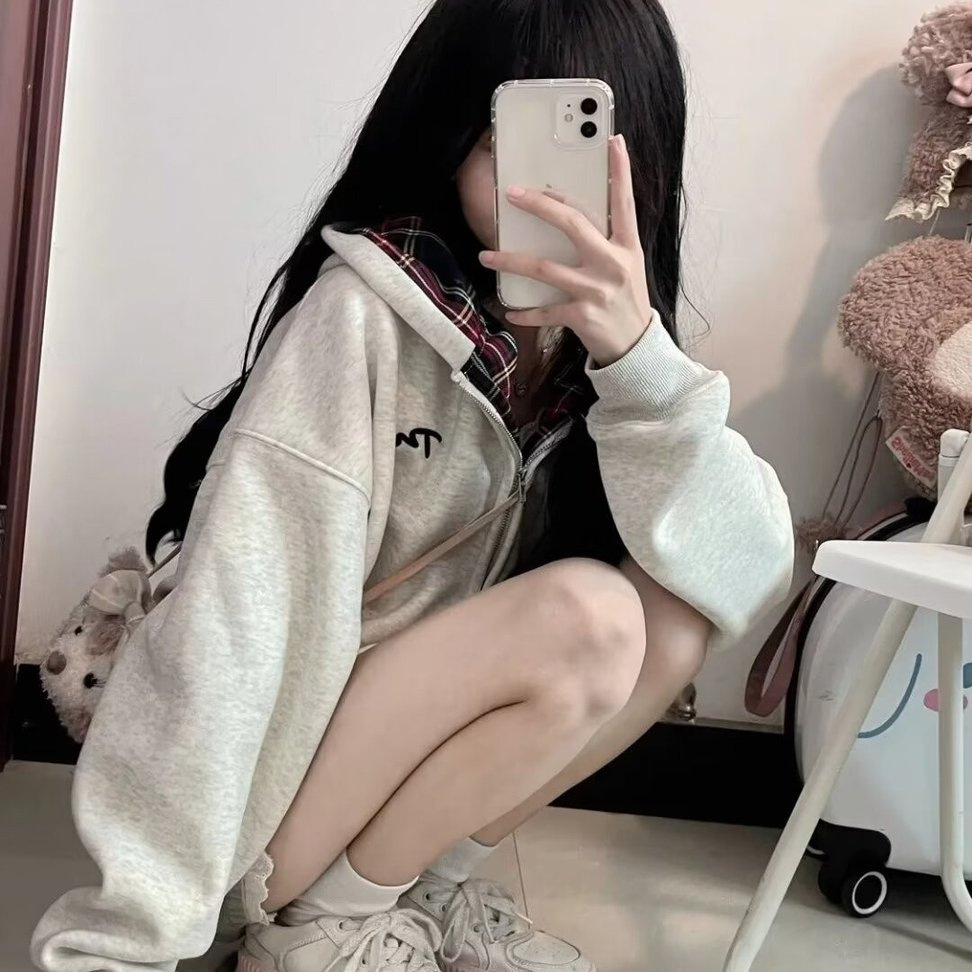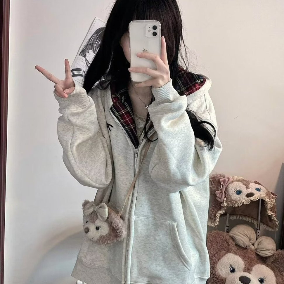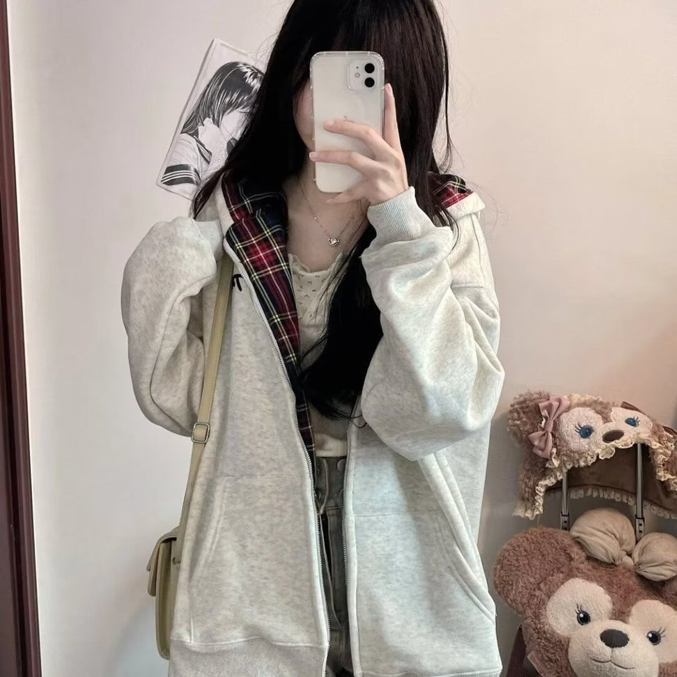 아메리칸 스타일 게으른 스타일 전국 패션 빈티지 체크 무늬 스웨터 카디건 달콤한 올 매치 커플 남성과 여성 후드 자켓스토어 가기