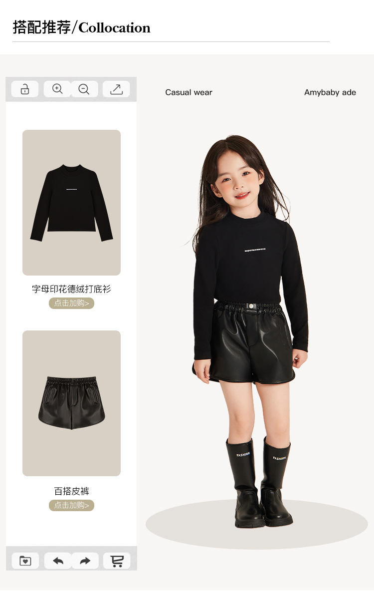 Amybaby Girls 'Top Winter 2024 새로운 어린이 미국 편지 인쇄 슬림 핏 스크럽베이스 셔츠스토어 가기