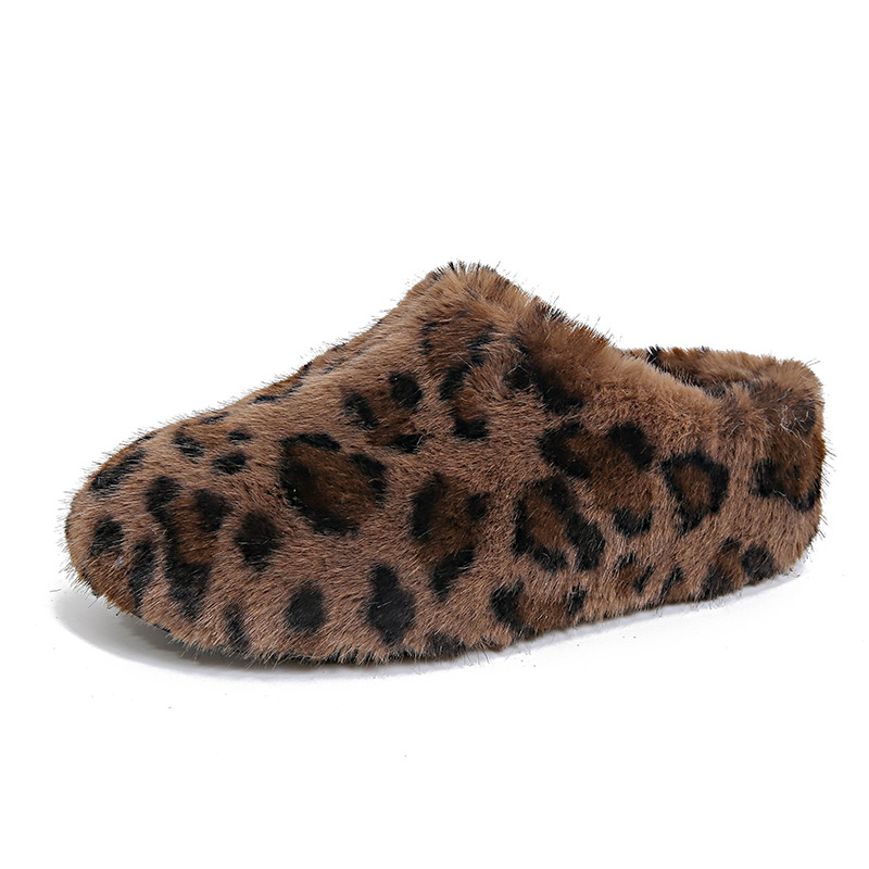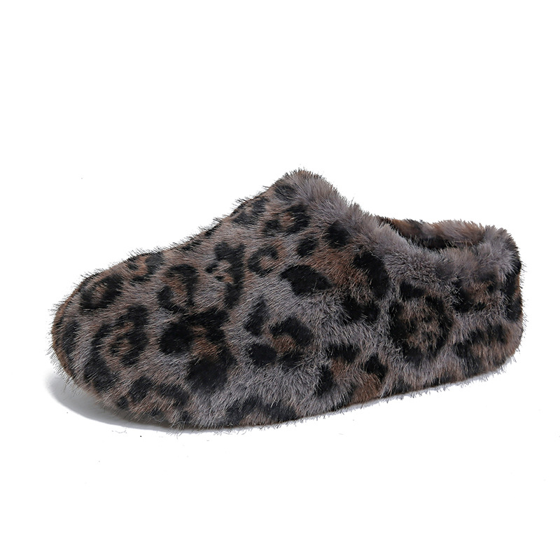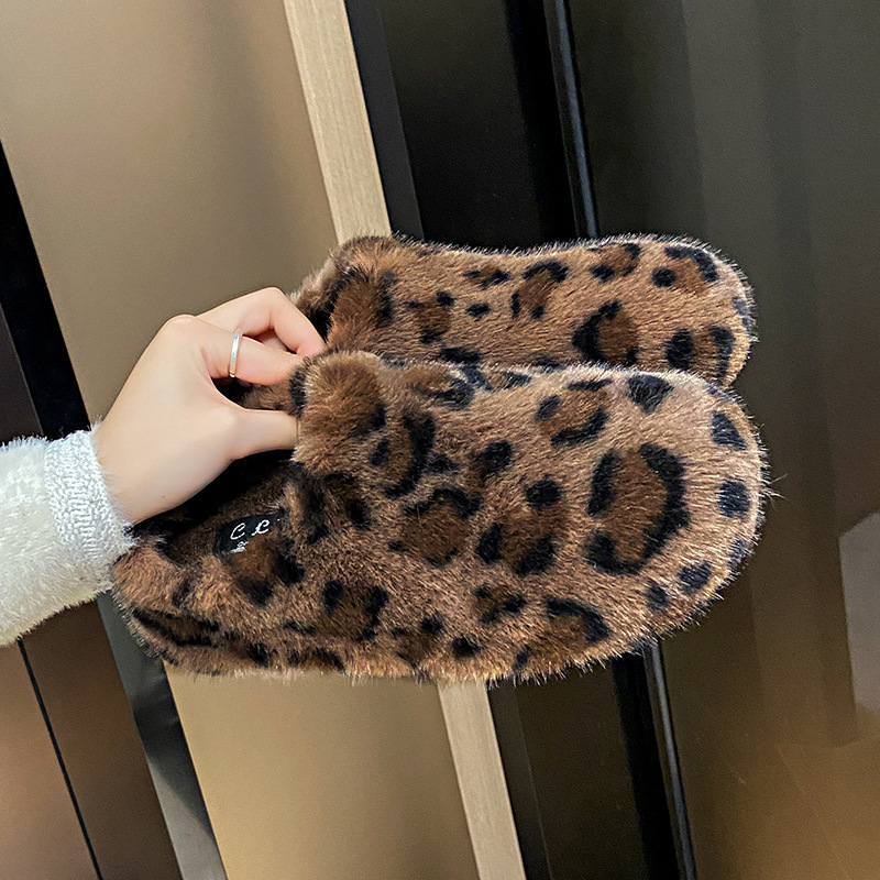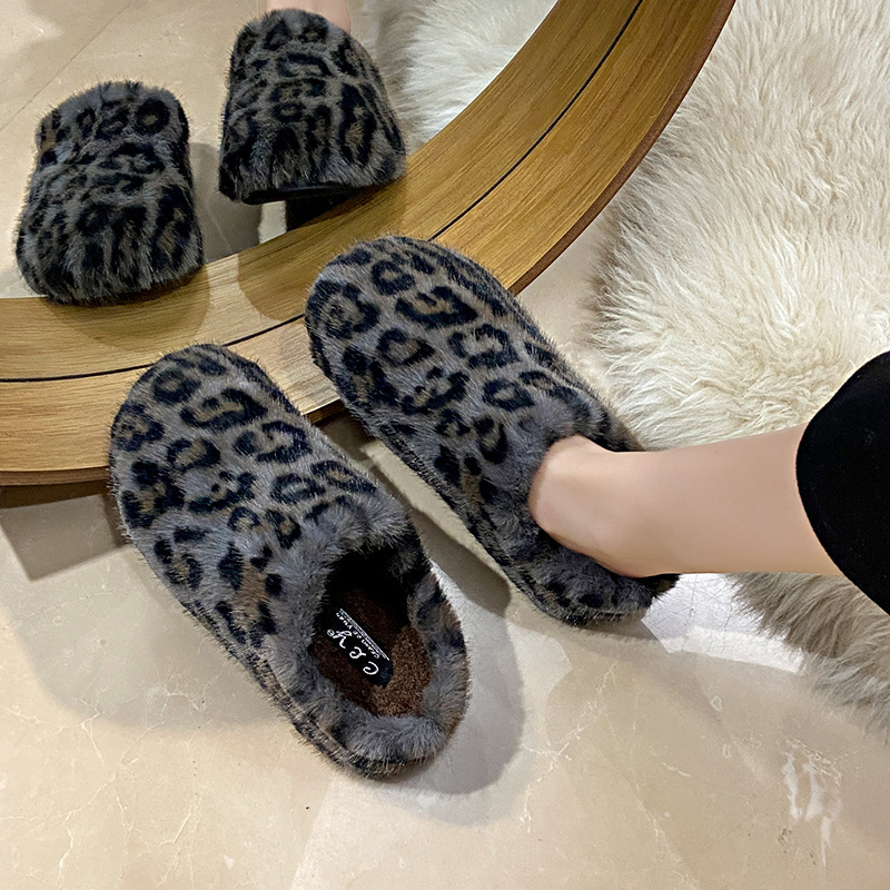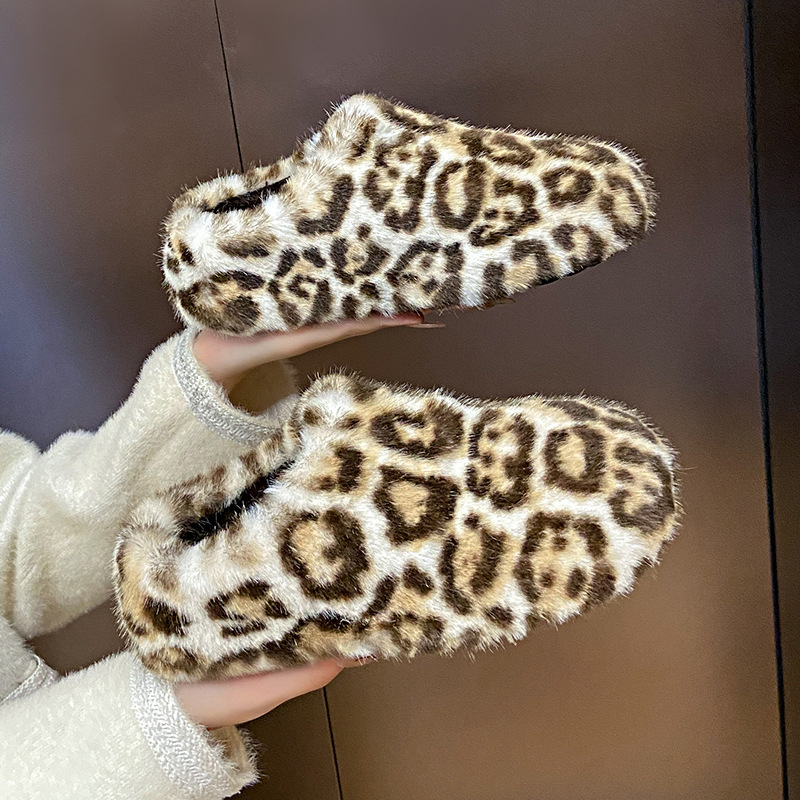 바오터우 한국 표범 봉제 두꺼운 따뜻한 슬리퍼 2024 가을과 겨울 슬립 온 슬리퍼스토어 가기