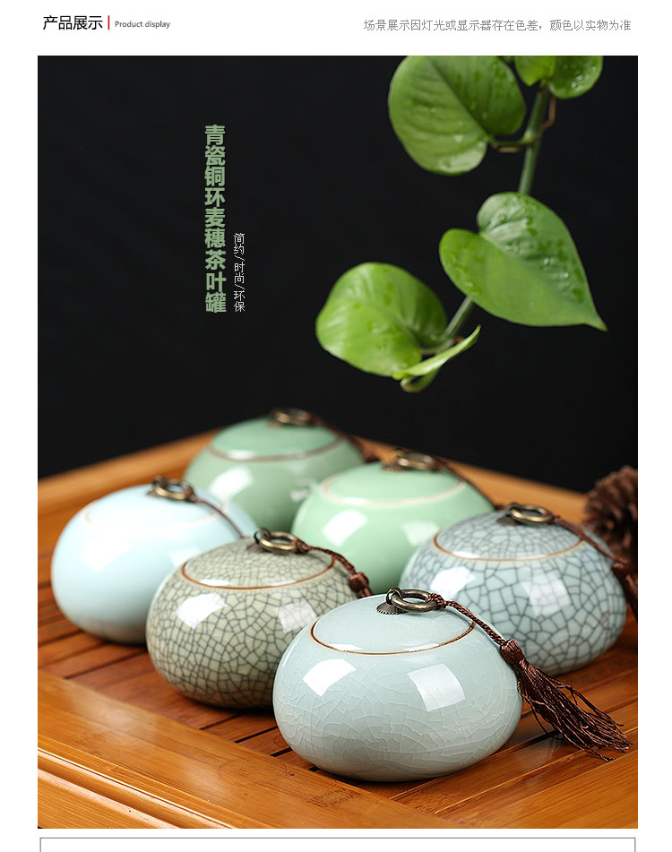 Longquan Tang Carpenter 청자 플러스 사이즈 차 창고 저장 탱크 세라믹 차 세트 휴대용 Pu'er 차 밀봉 탱크 대형 차 구름스토어 가기