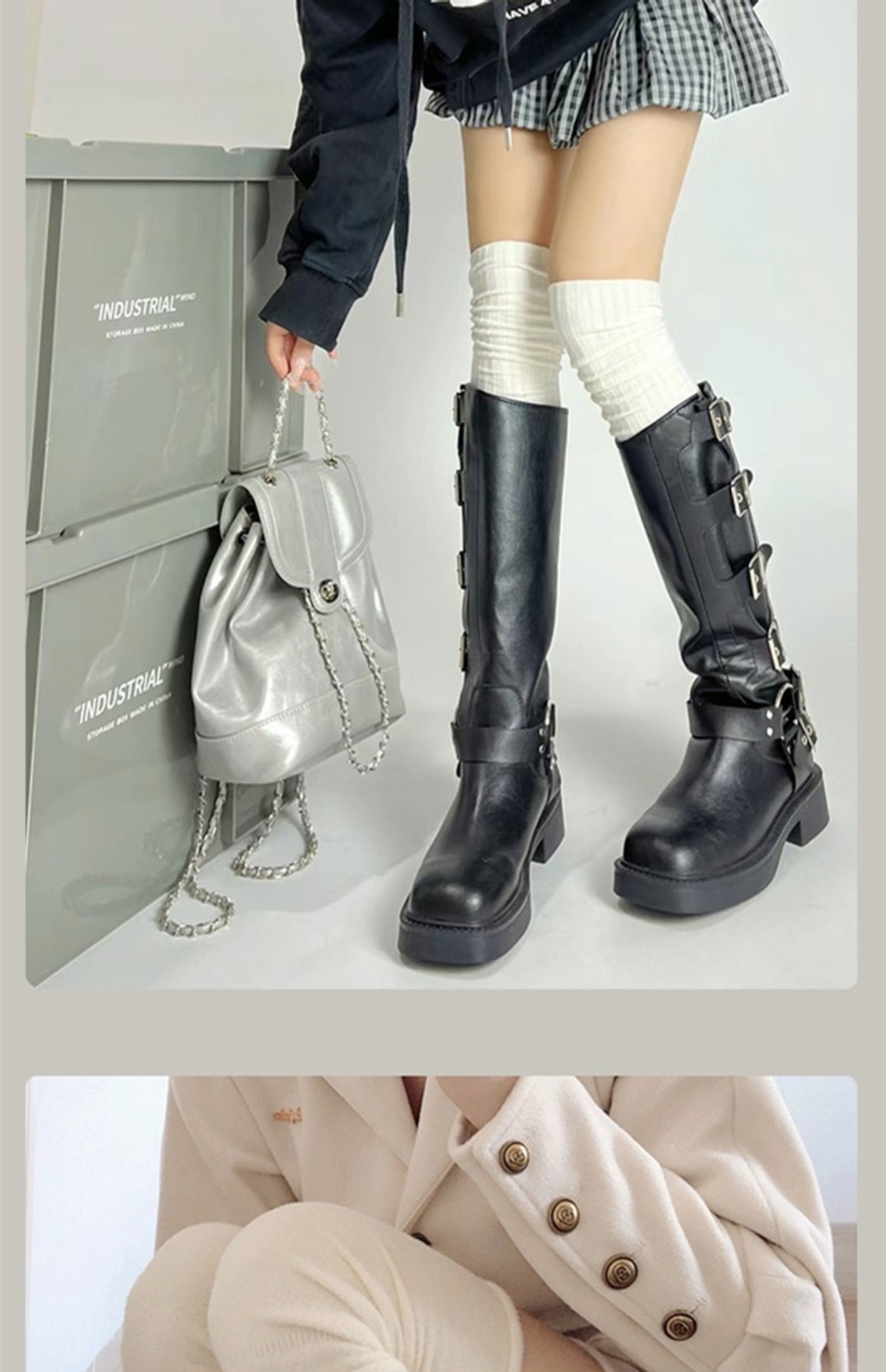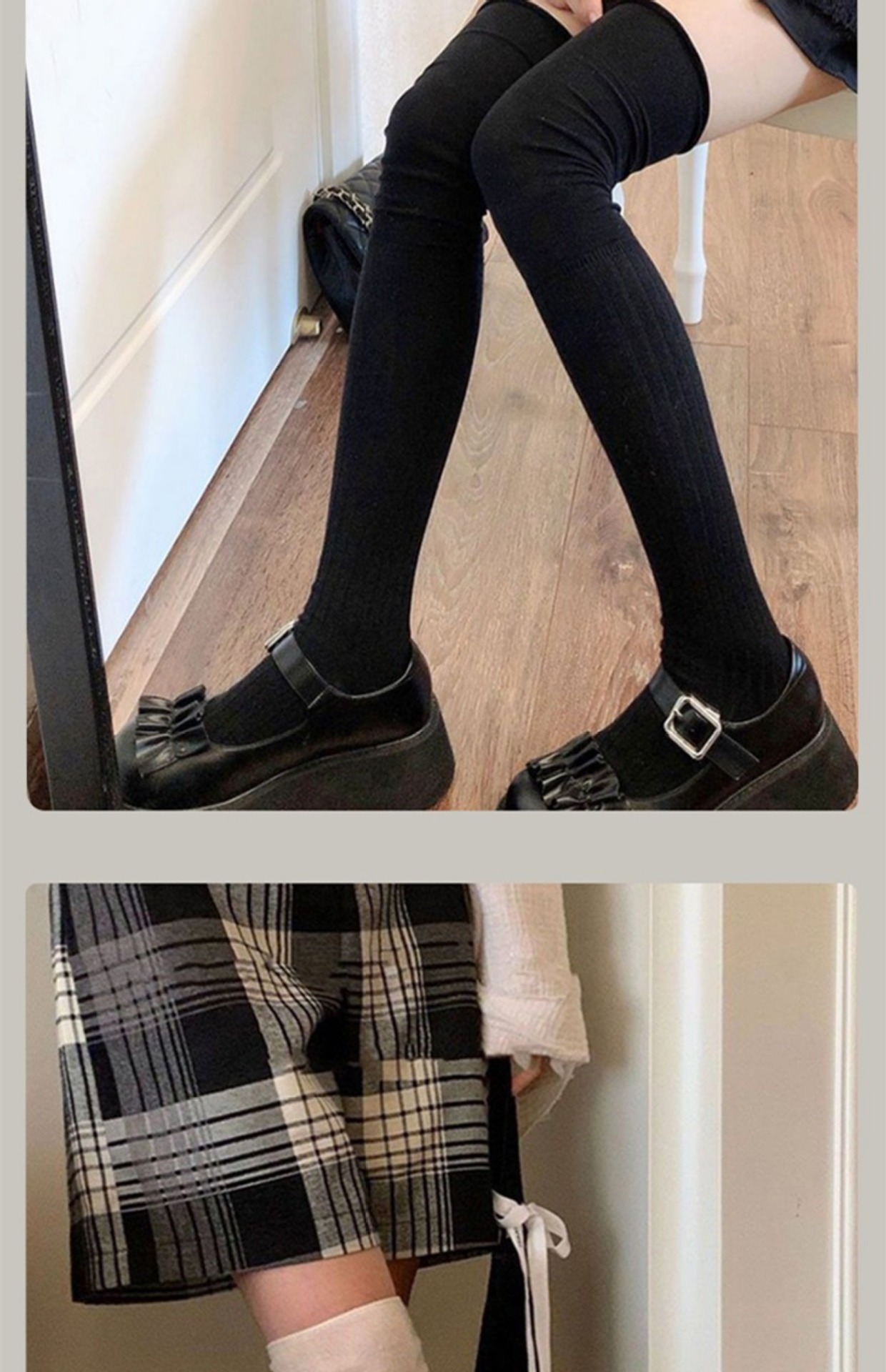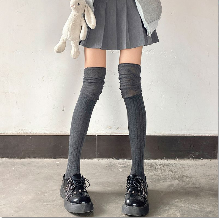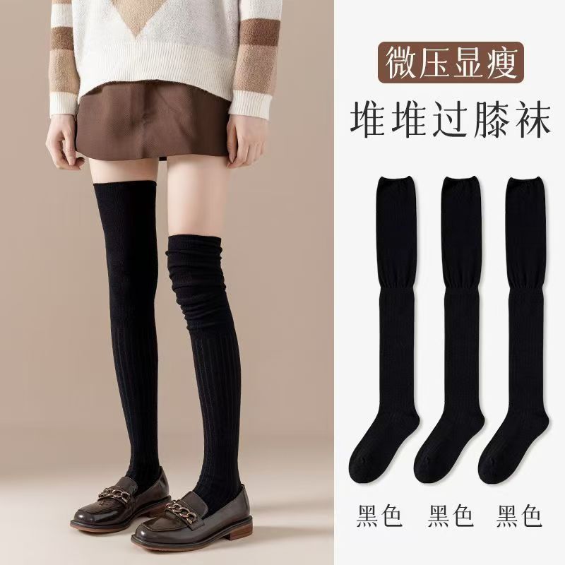 한국 순수한 욕망 스타일 긴 튜브 바느질 쌓인 양말 Styx 코튼 Ins Over-the-Knee Maillard 매칭 부츠 가을과 겨울