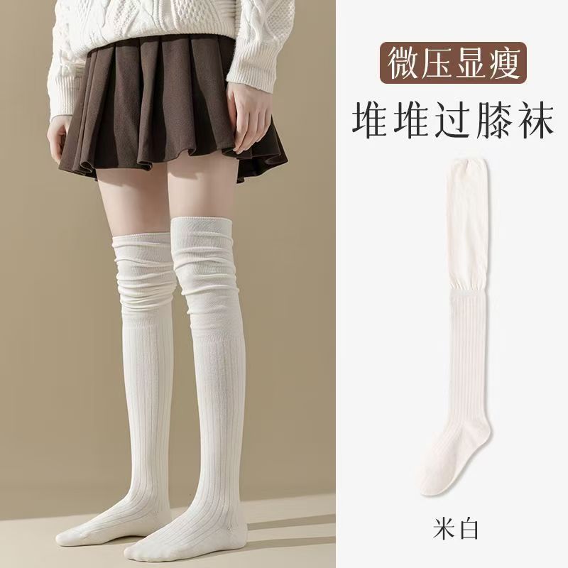 한국 순수한 욕망 스타일 긴 튜브 바느질 쌓인 양말 Styx 코튼 Ins Over-the-Knee Maillard 매칭 부츠 가을과 겨울스토어 가기