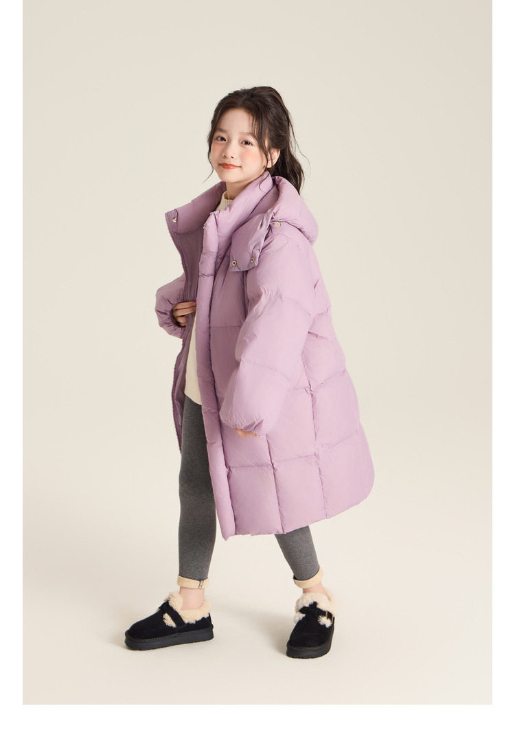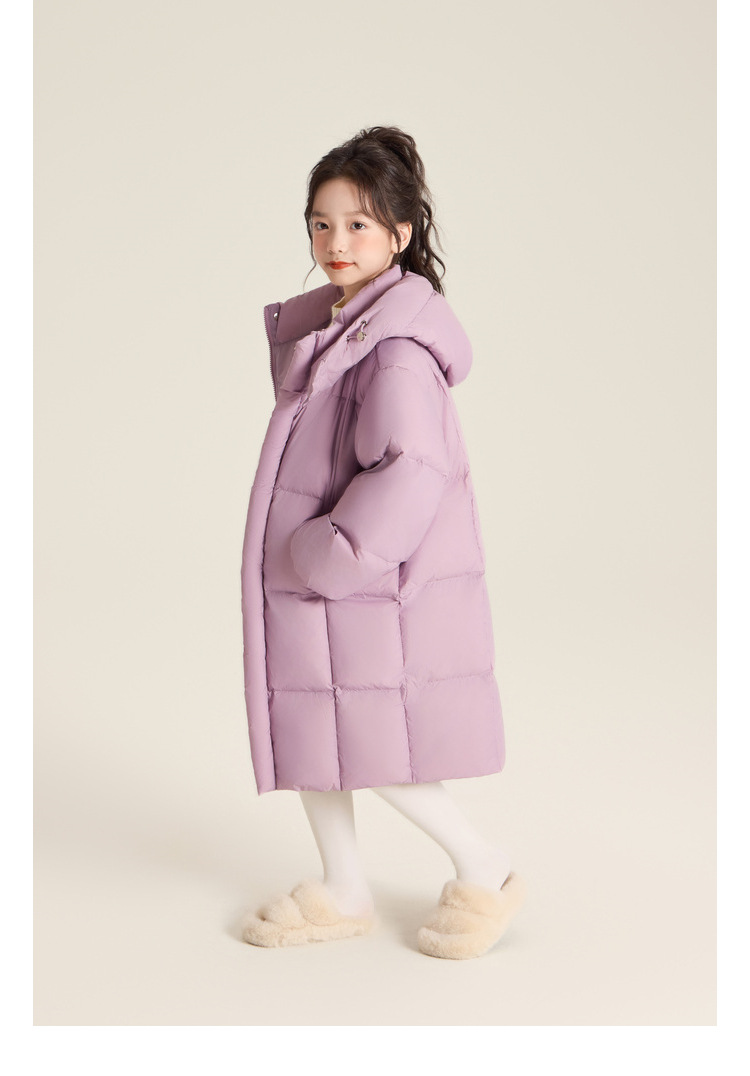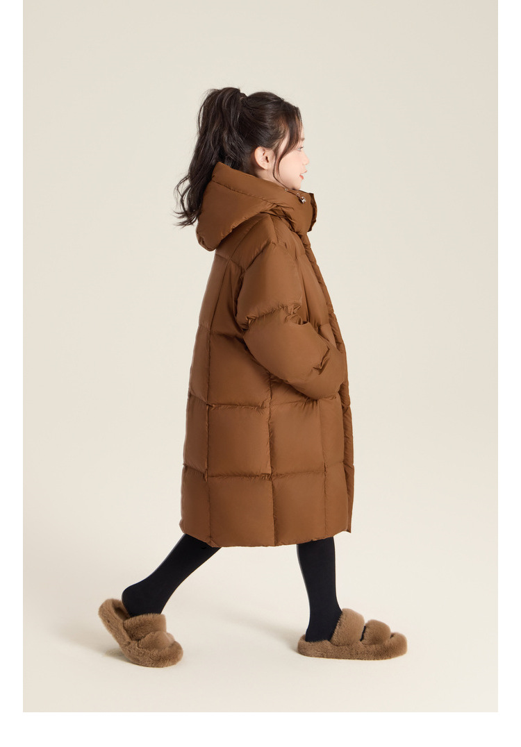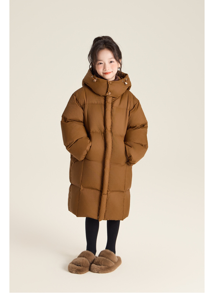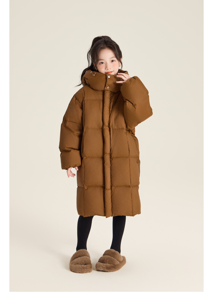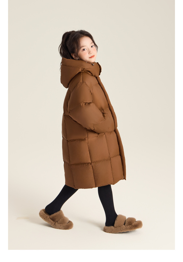 Amybaby Girl's Down Jacket Winter 2024 새로운 캐주얼 느슨한 긴 무릎 위 웨스턴 스타일 두꺼운 다운 재킷스토어 가기