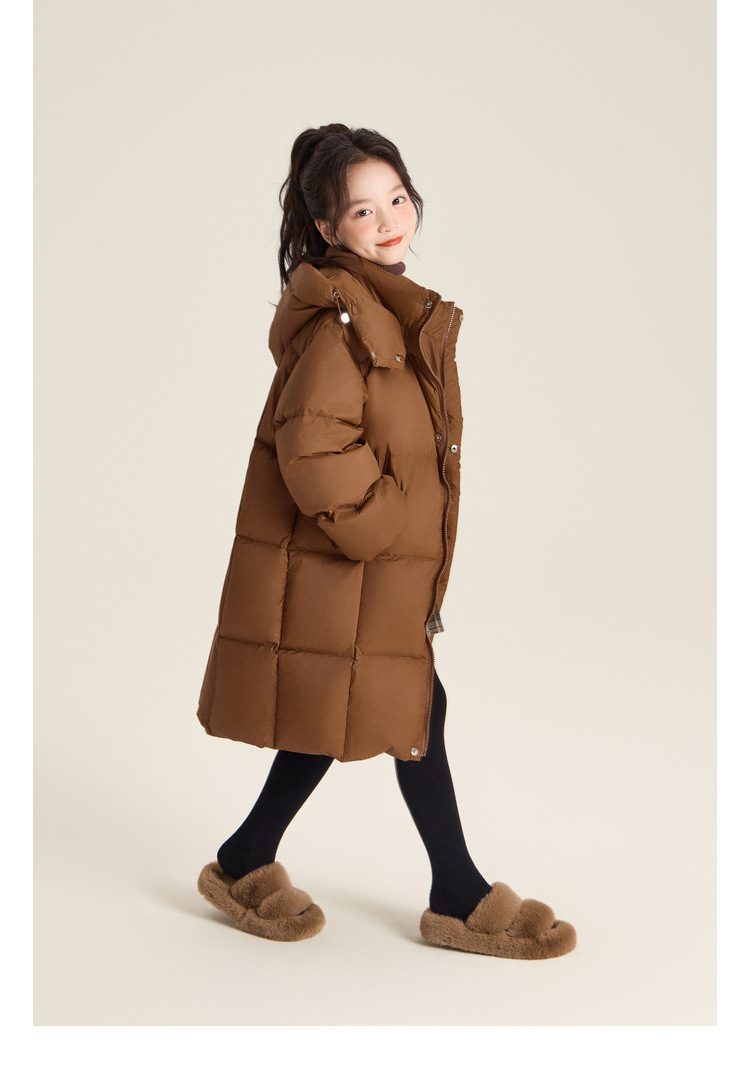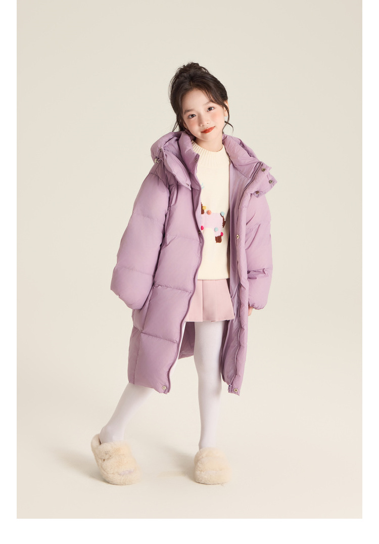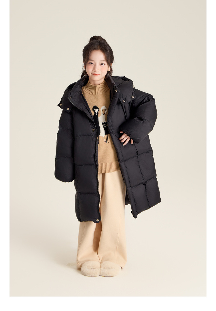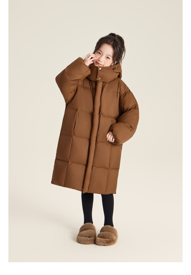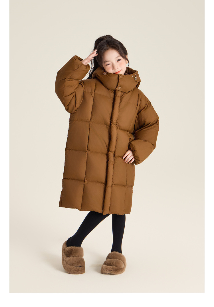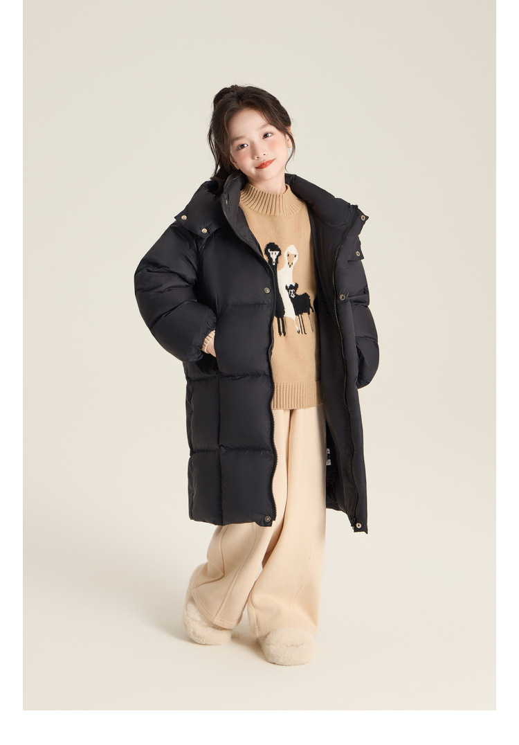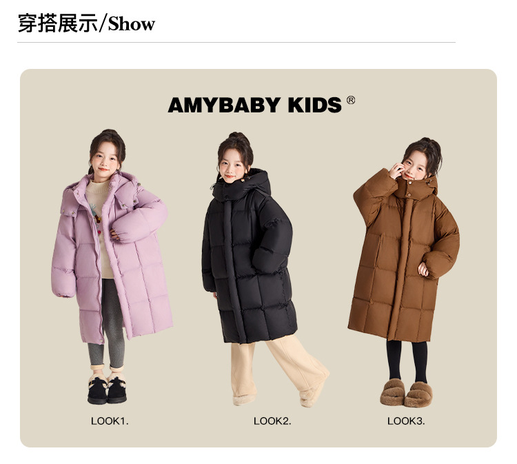 Amybaby Girl's Down Jacket Winter 2024 새로운 캐주얼 느슨한 긴 무릎 위 웨스턴 스타일 두꺼운 다운 재킷