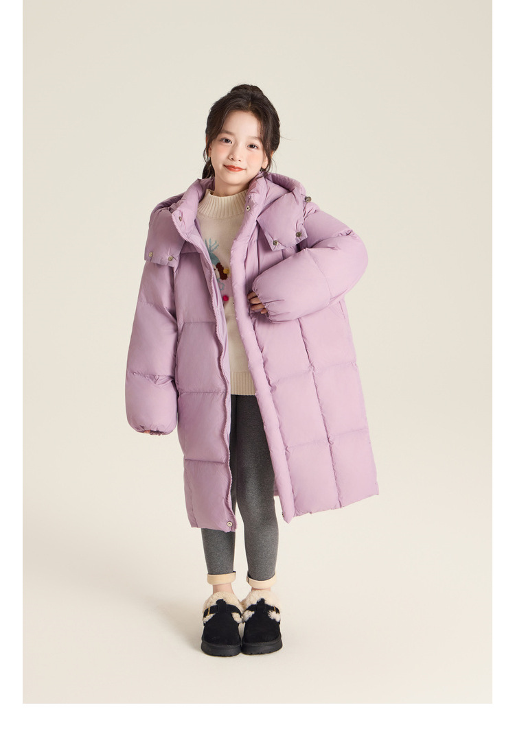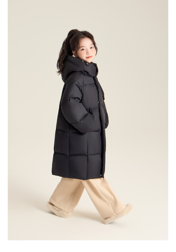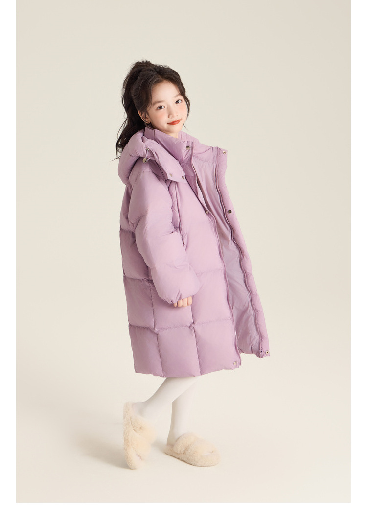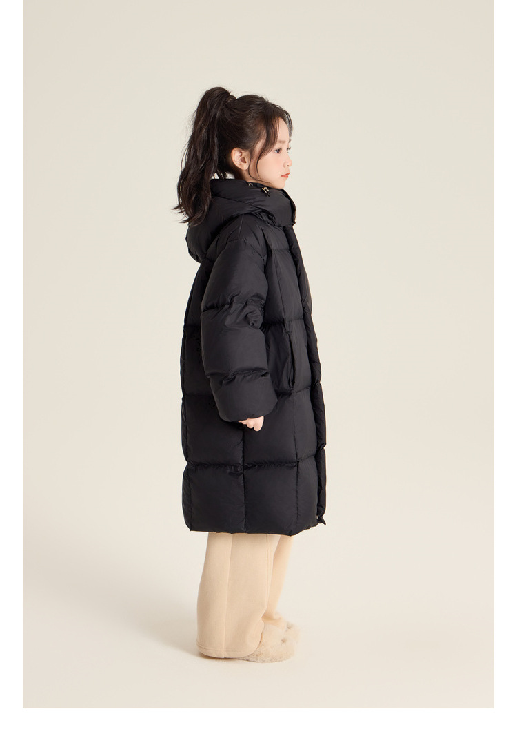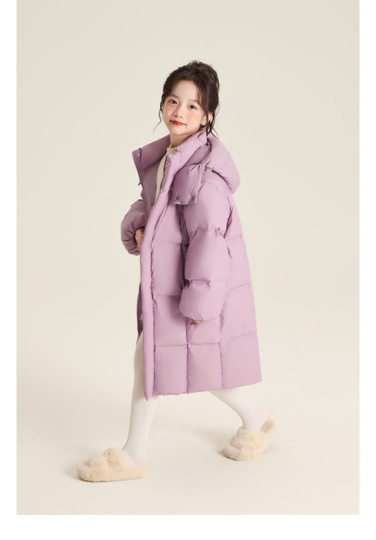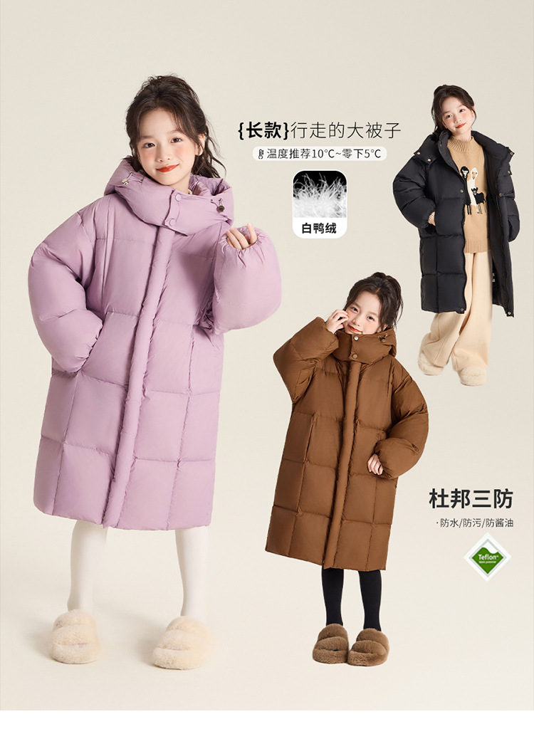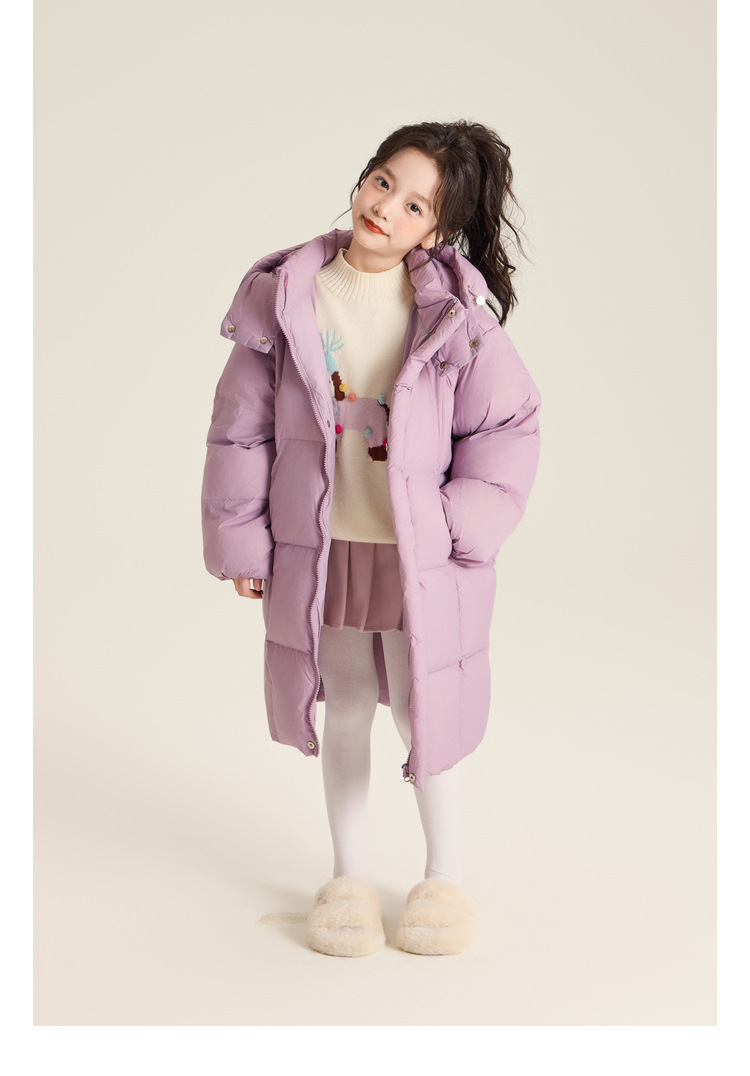 Amybaby Girl's Down Jacket Winter 2024 새로운 캐주얼 느슨한 긴 무릎 위 웨스턴 스타일 두꺼운 다운 재킷