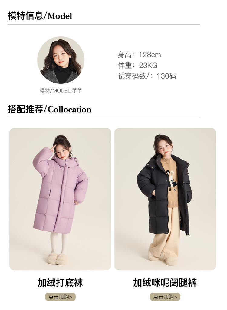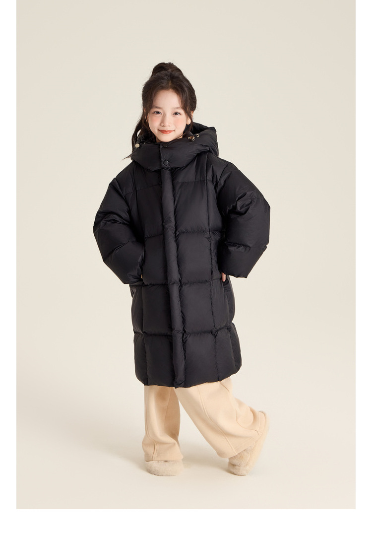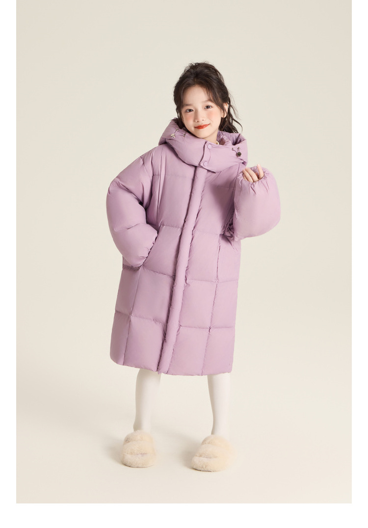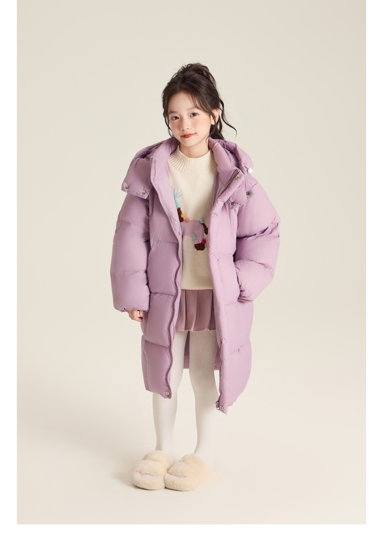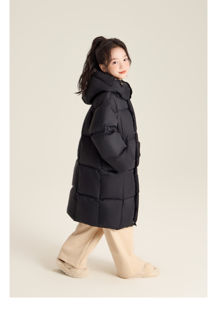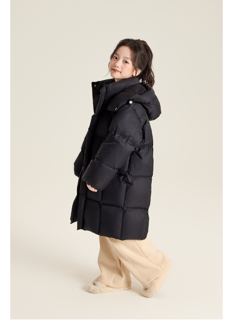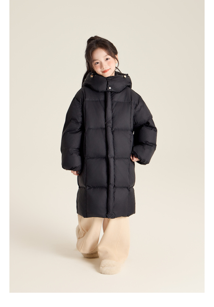 Amybaby Girl's Down Jacket Winter 2024 새로운 캐주얼 느슨한 긴 무릎 위 웨스턴 스타일 두꺼운 다운 재킷
