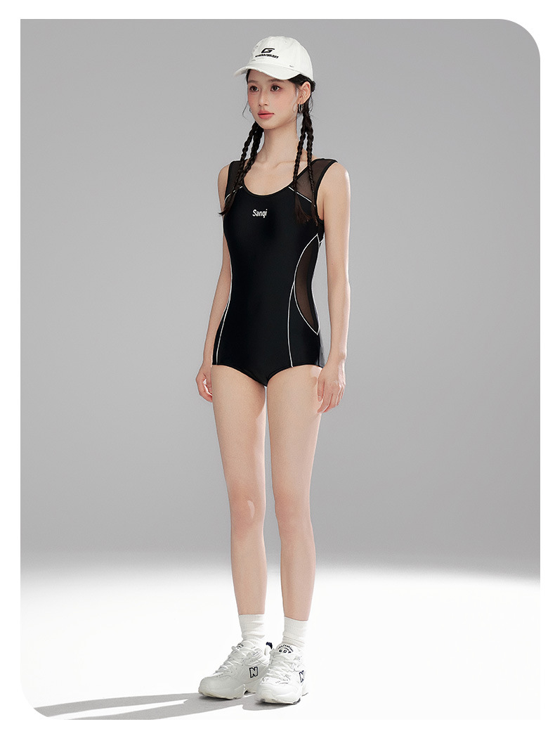 Sanqi 수영복 여성 2024 새로운 플러스 사이즈 결합 된 전문 보수 수영장 특별 복서 경주 수영복