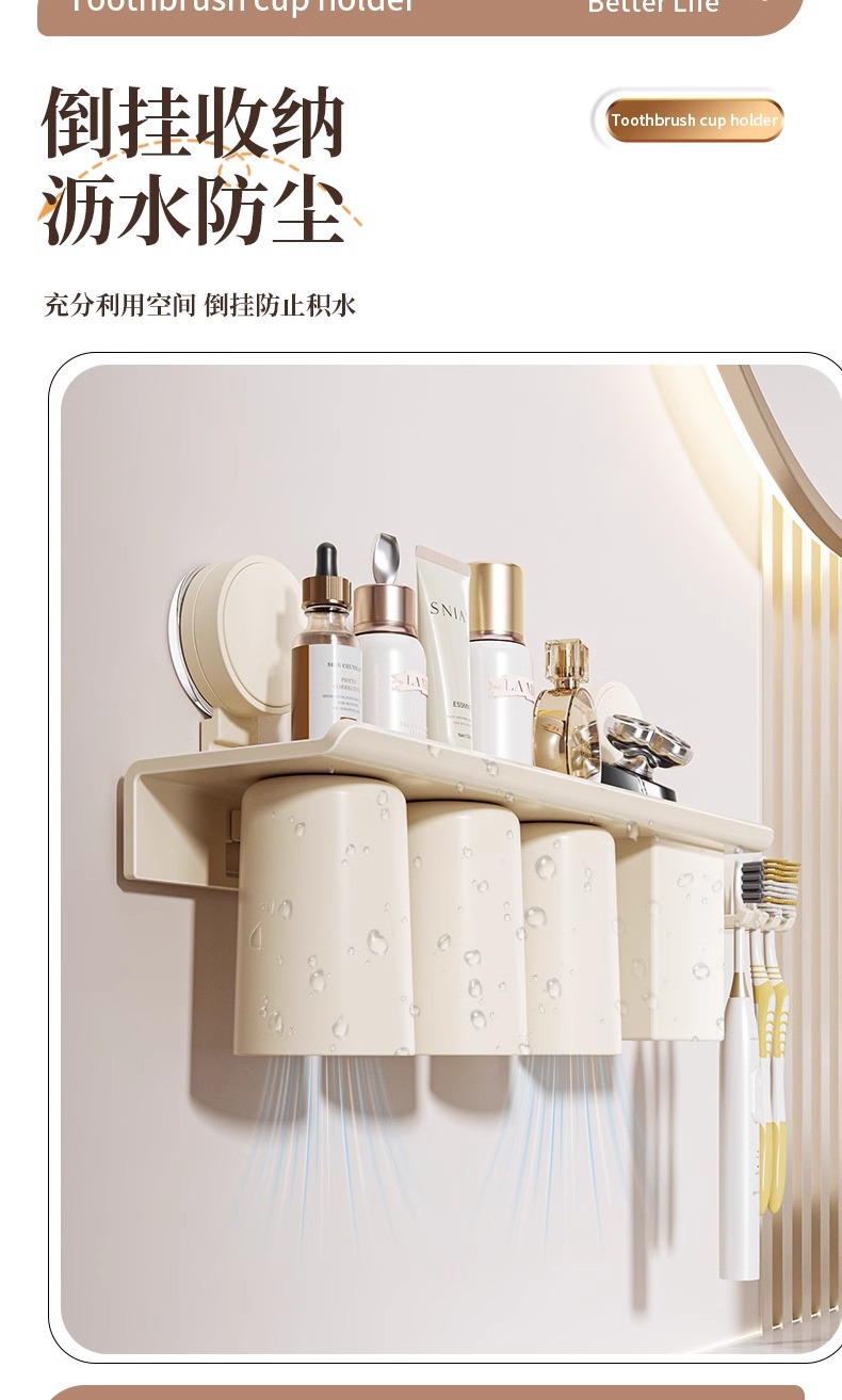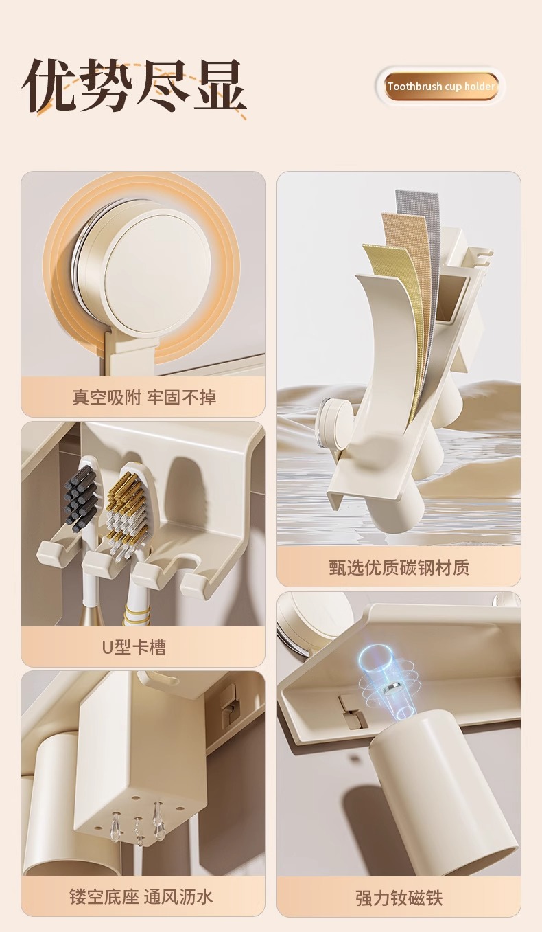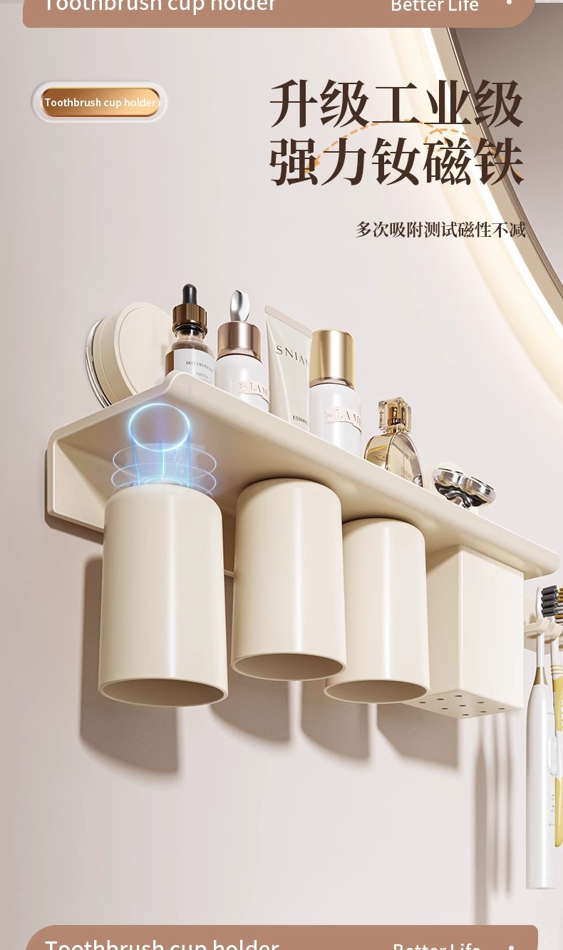 칫솔 랙 마그네틱 흡입 펀치 프리 화장실 무과시 컵 브러시 컵 저장 벽 장착 전기 칫솔 랙