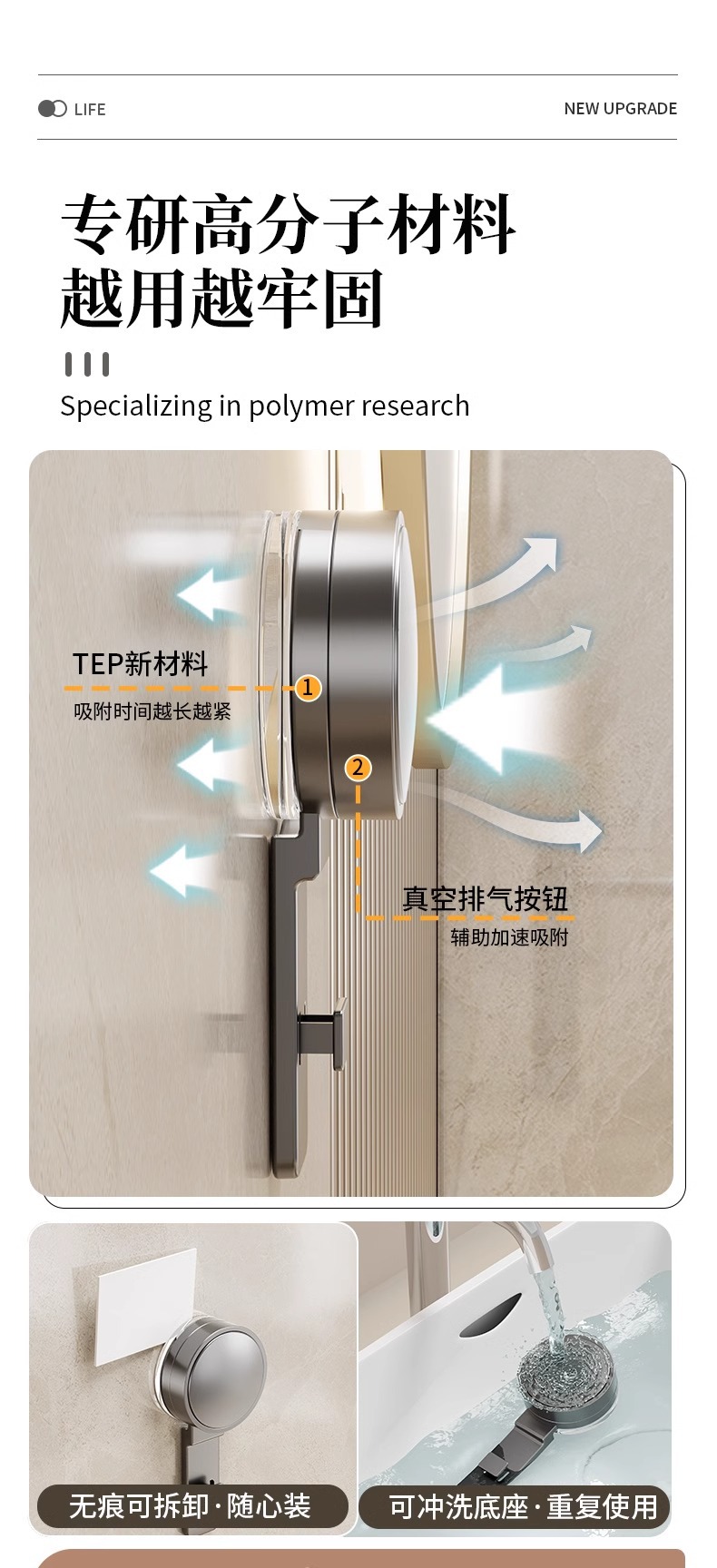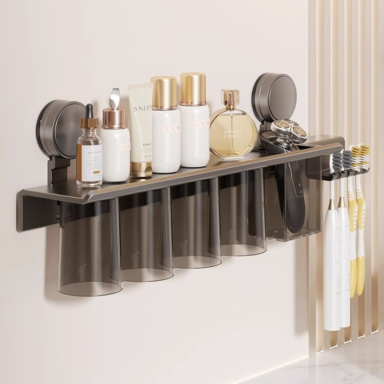 • 흡착컵 자석 칫솔꽂이 4컵 [건그레이]