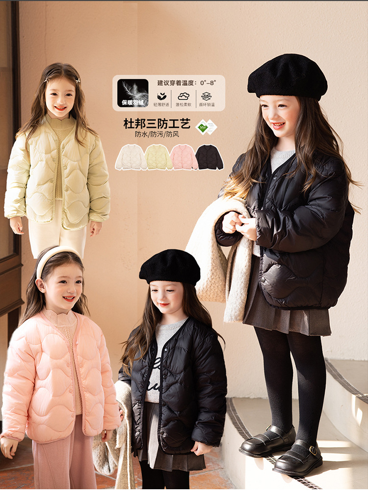 Amybaby Girl's Down Jacket Winter 2024 New Loose Gourd Short Stacked Lightweight Down Jacket