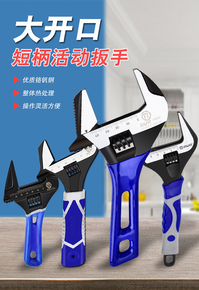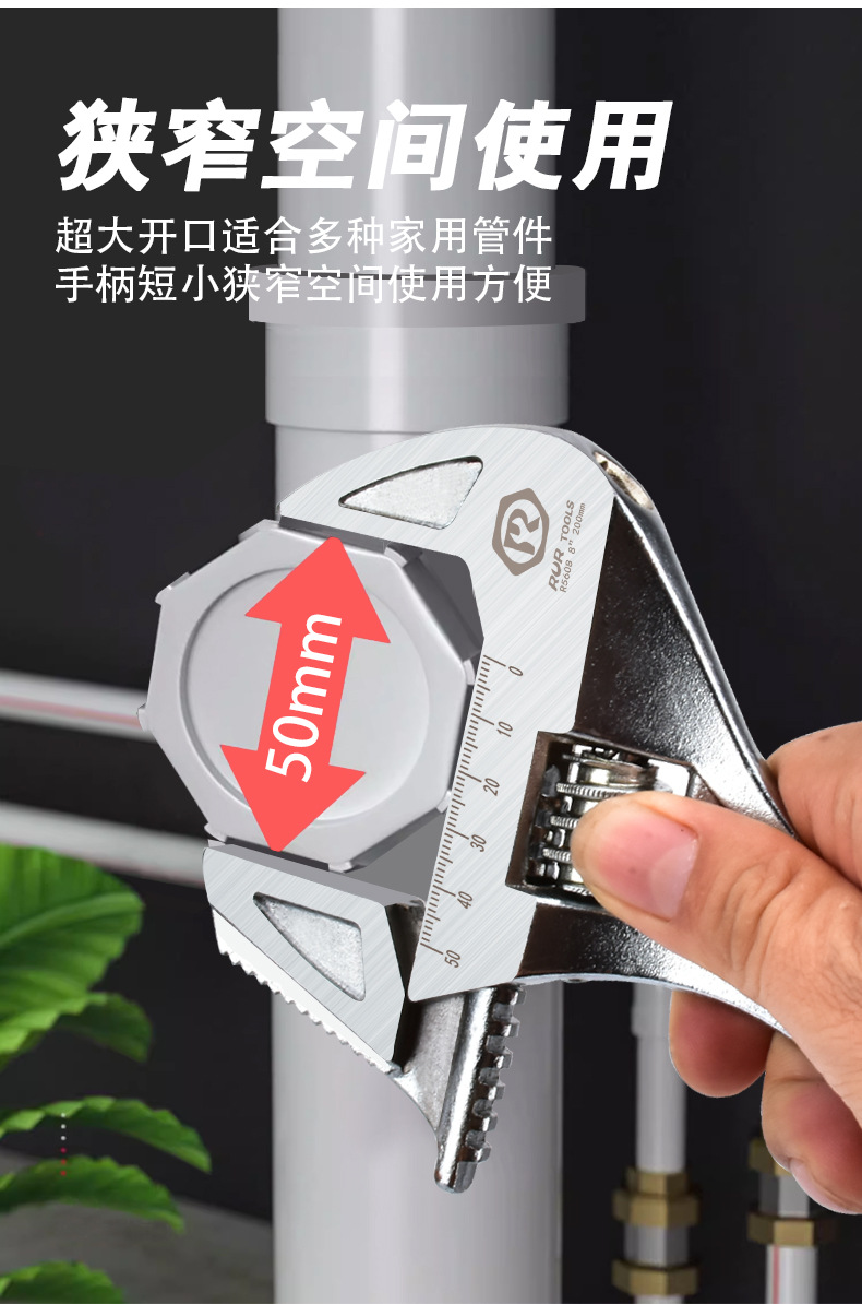 대형 오픈 엔드 조정 가능한 렌치 짧은 손잡이 보드 다기능 욕실 렌치 대형 직경 짧은 손잡이 작은 오픈 엔드 렌치