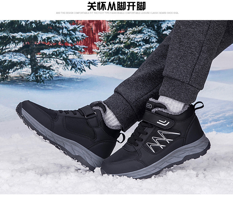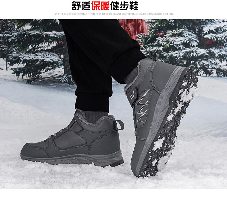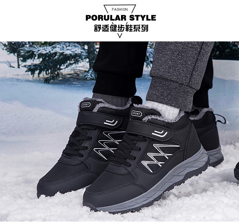 가을과 겨울 노인의 신발 기모 두꺼운 스노우 부츠 하이 탑 플러스 사이즈 코튼 슈즈 워킹 슈즈 비 슬립 따뜻한 코튼 부츠