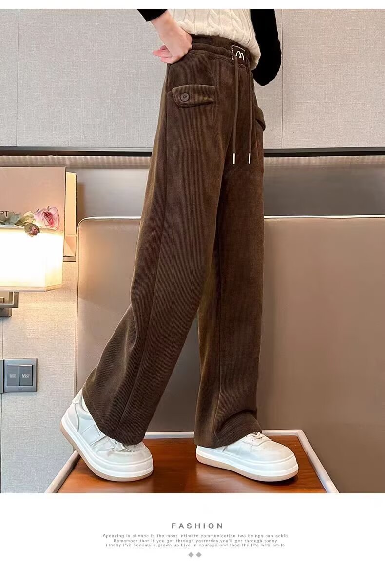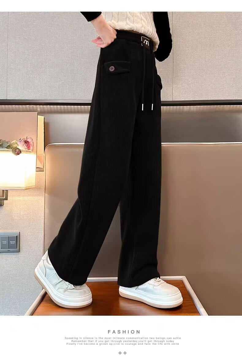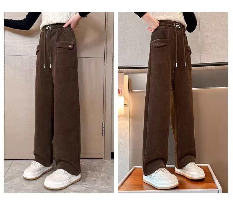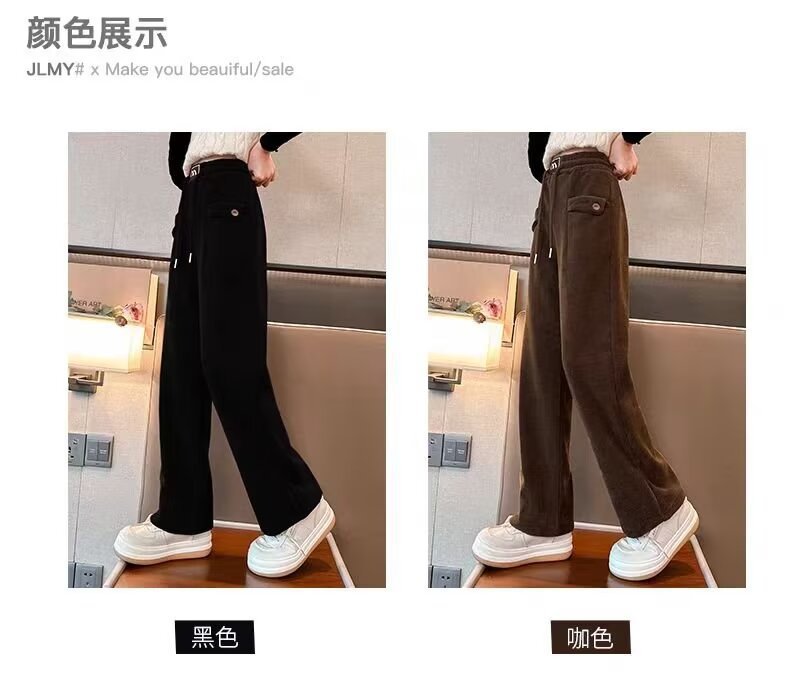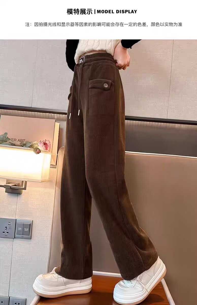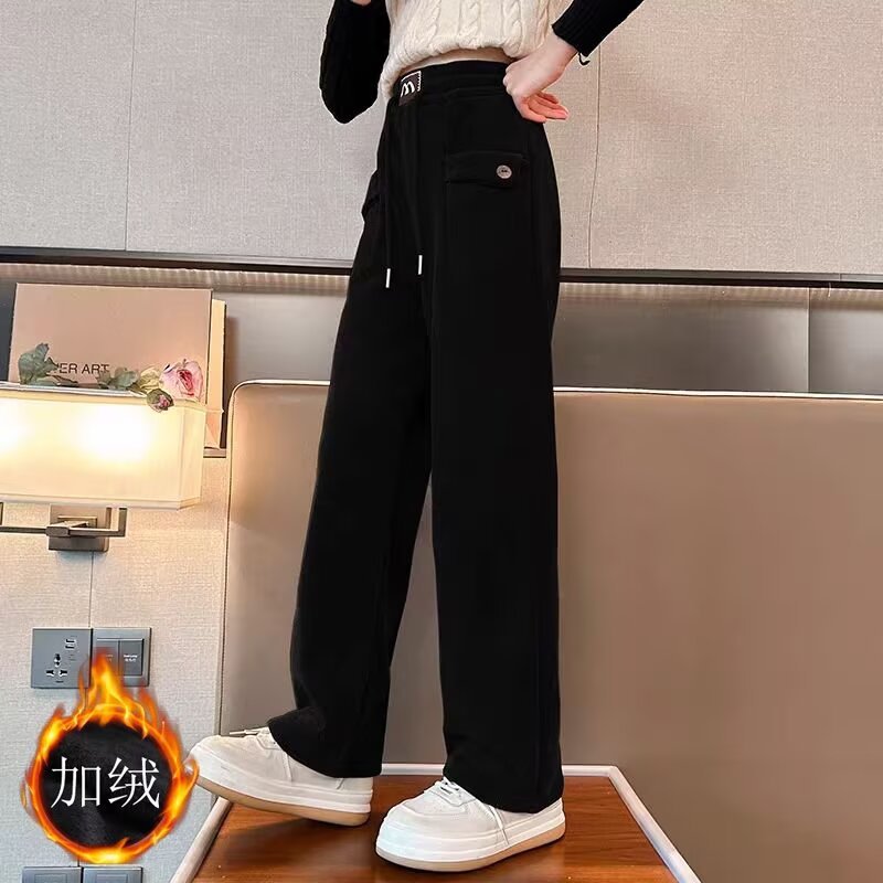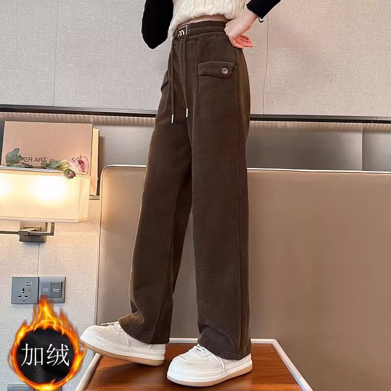 소녀 기모 바지 가을과 겨울 2024 새로운 어린이 스트레이트 바지 겨울 두꺼운 캐주얼 와이드 레그 바지스토어 가기