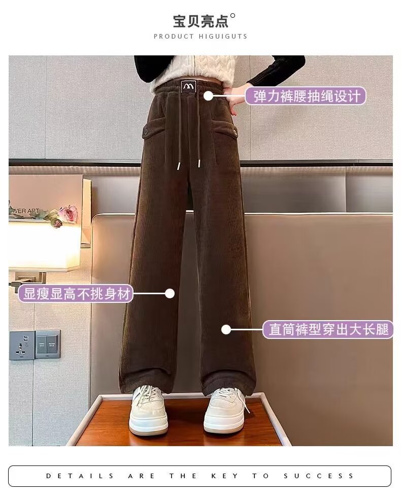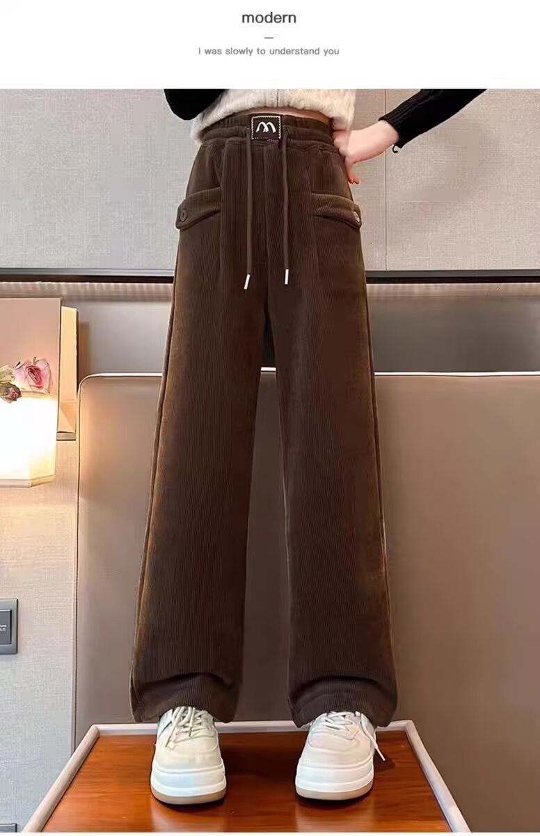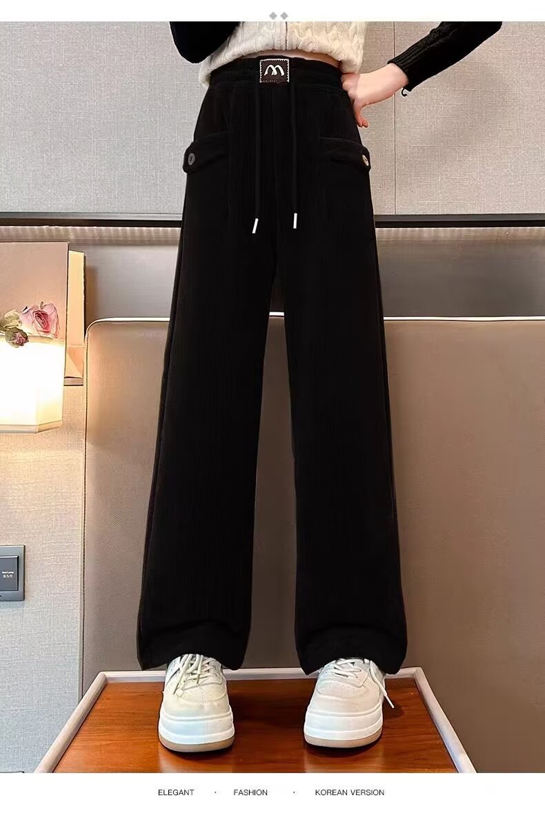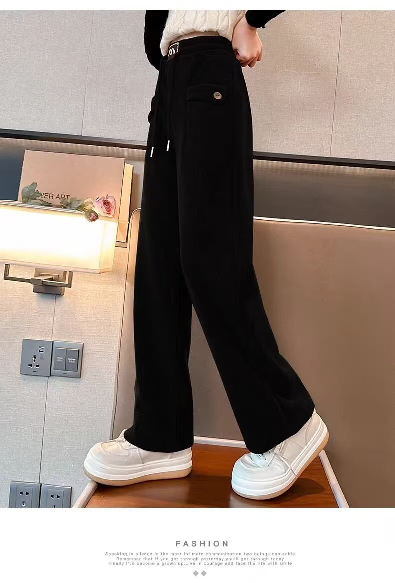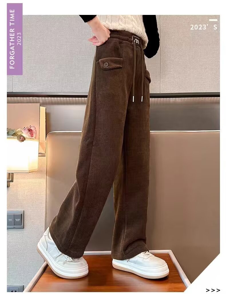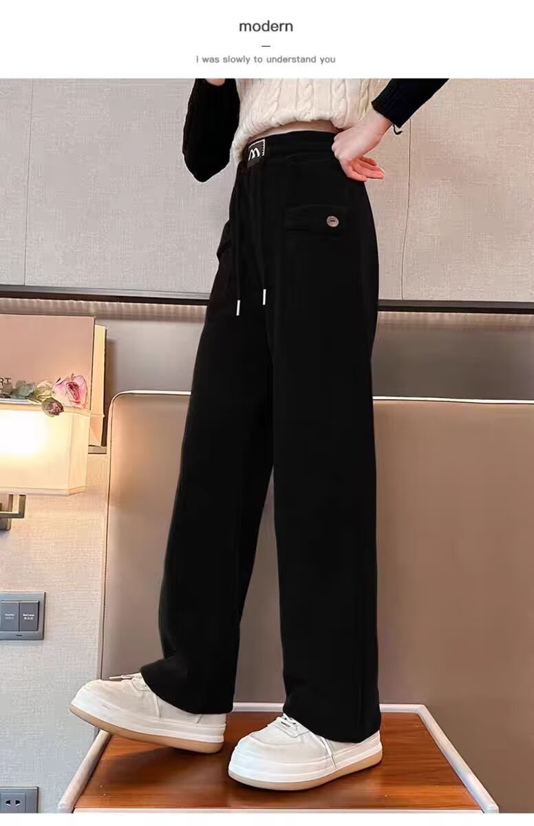 소녀 기모 바지 가을과 겨울 2024 새로운 어린이 스트레이트 바지 겨울 두꺼운 캐주얼 와이드 레그 바지스토어 가기