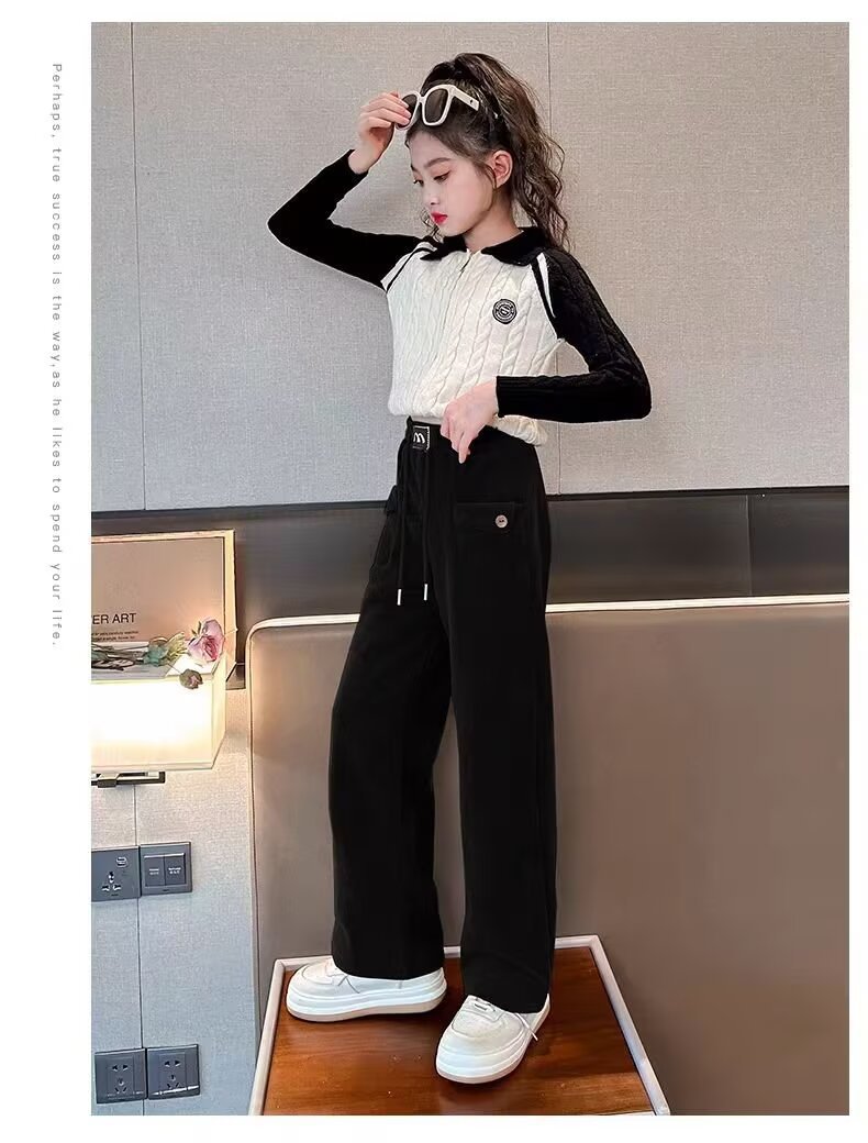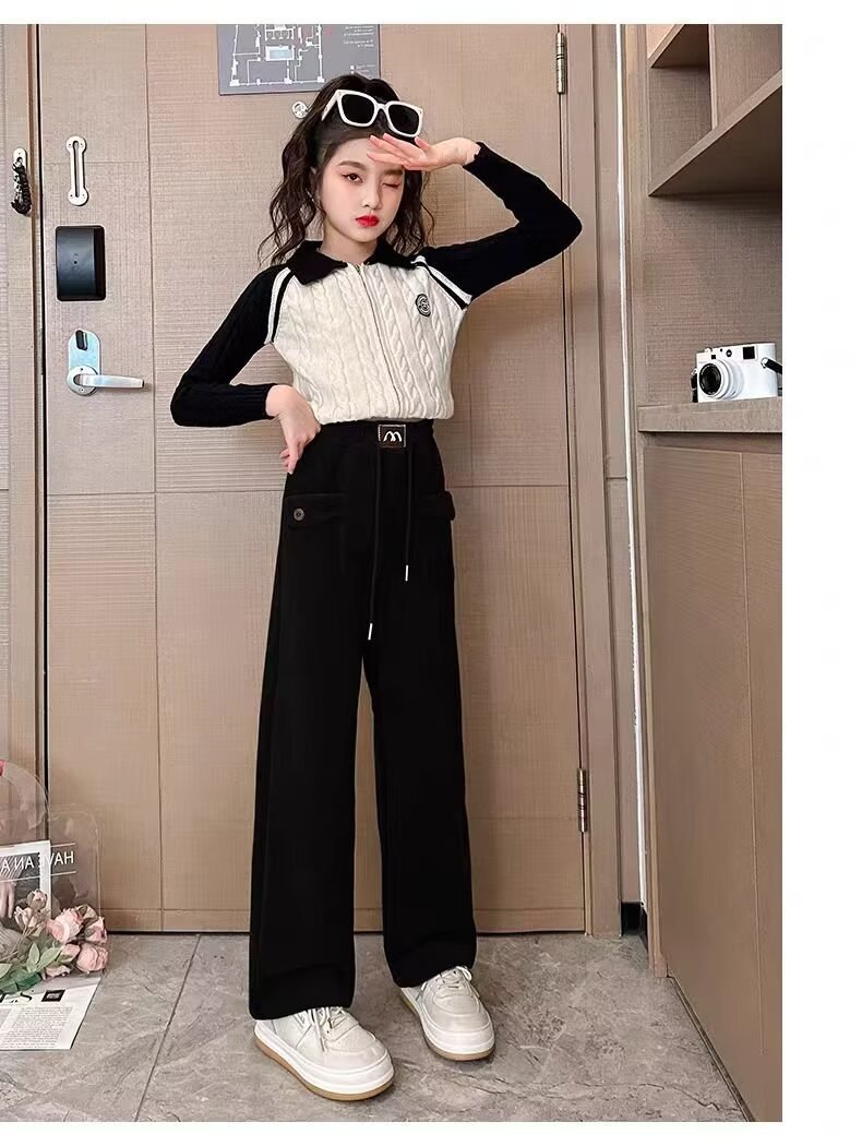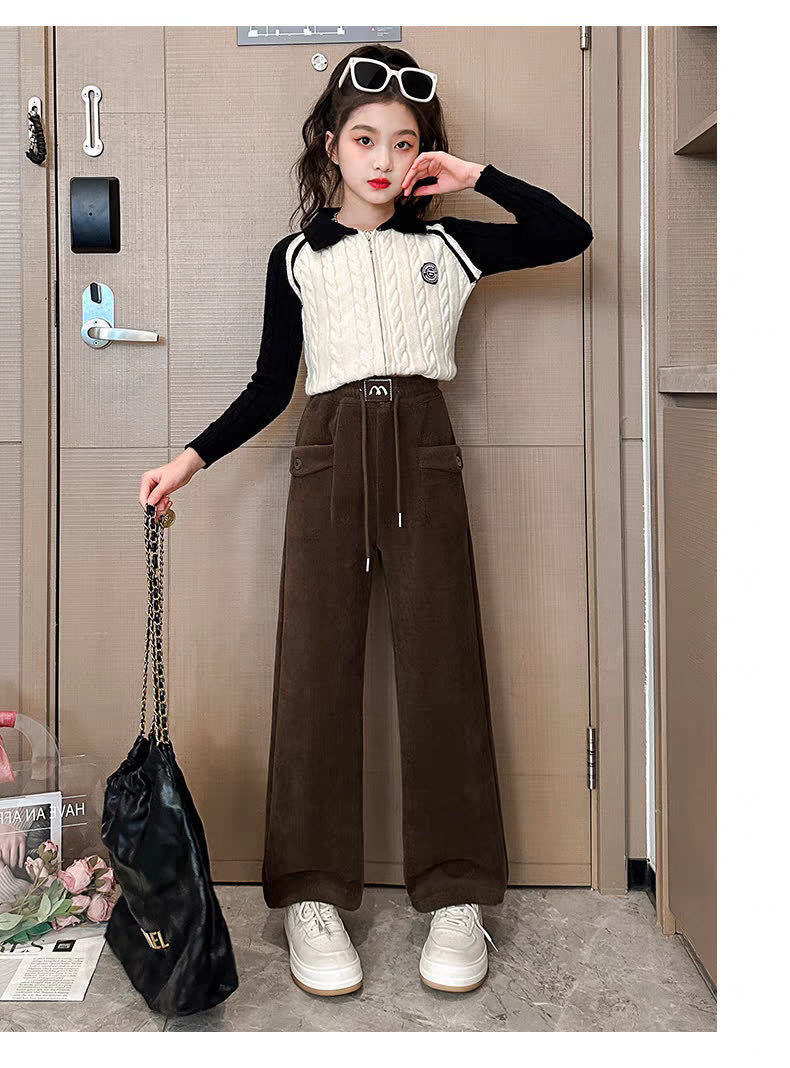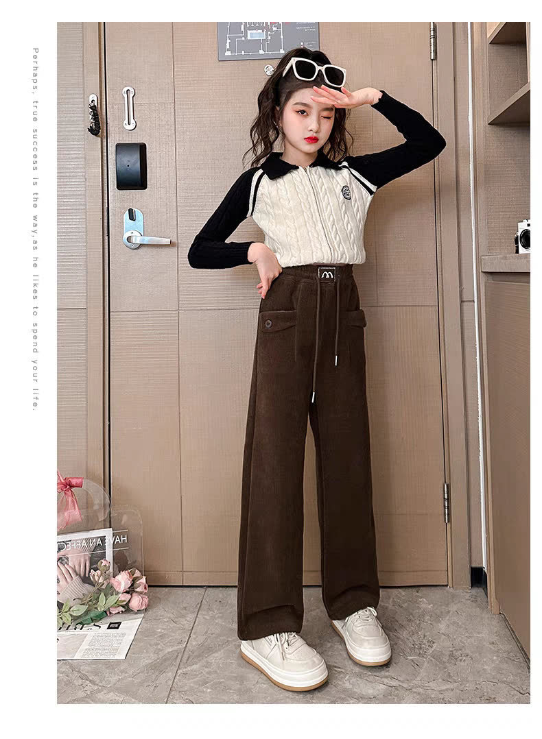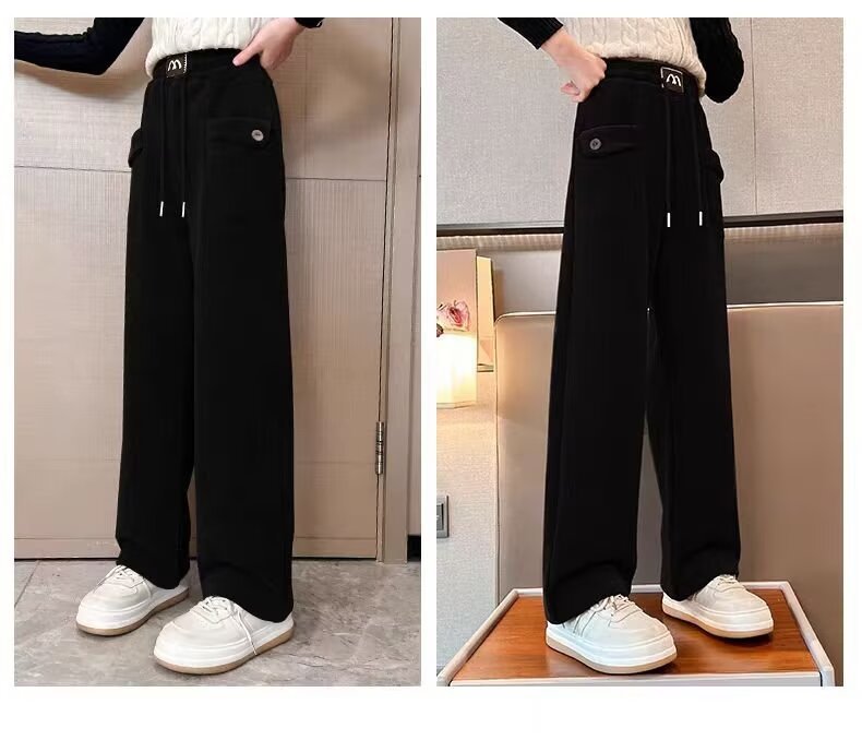 소녀 기모 바지 가을과 겨울 2024 새로운 어린이 스트레이트 바지 겨울 두꺼운 캐주얼 와이드 레그 바지