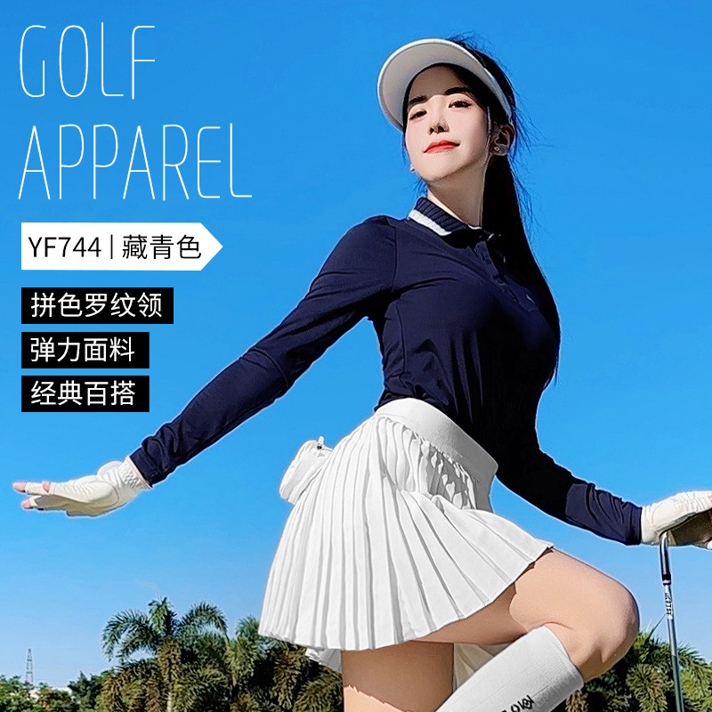 PGM 골프 의류 여성용 긴팔 티셔츠 컬러 블록 링 칼라 허리 슬리밍 탑 봄과 가을 스포츠웨어