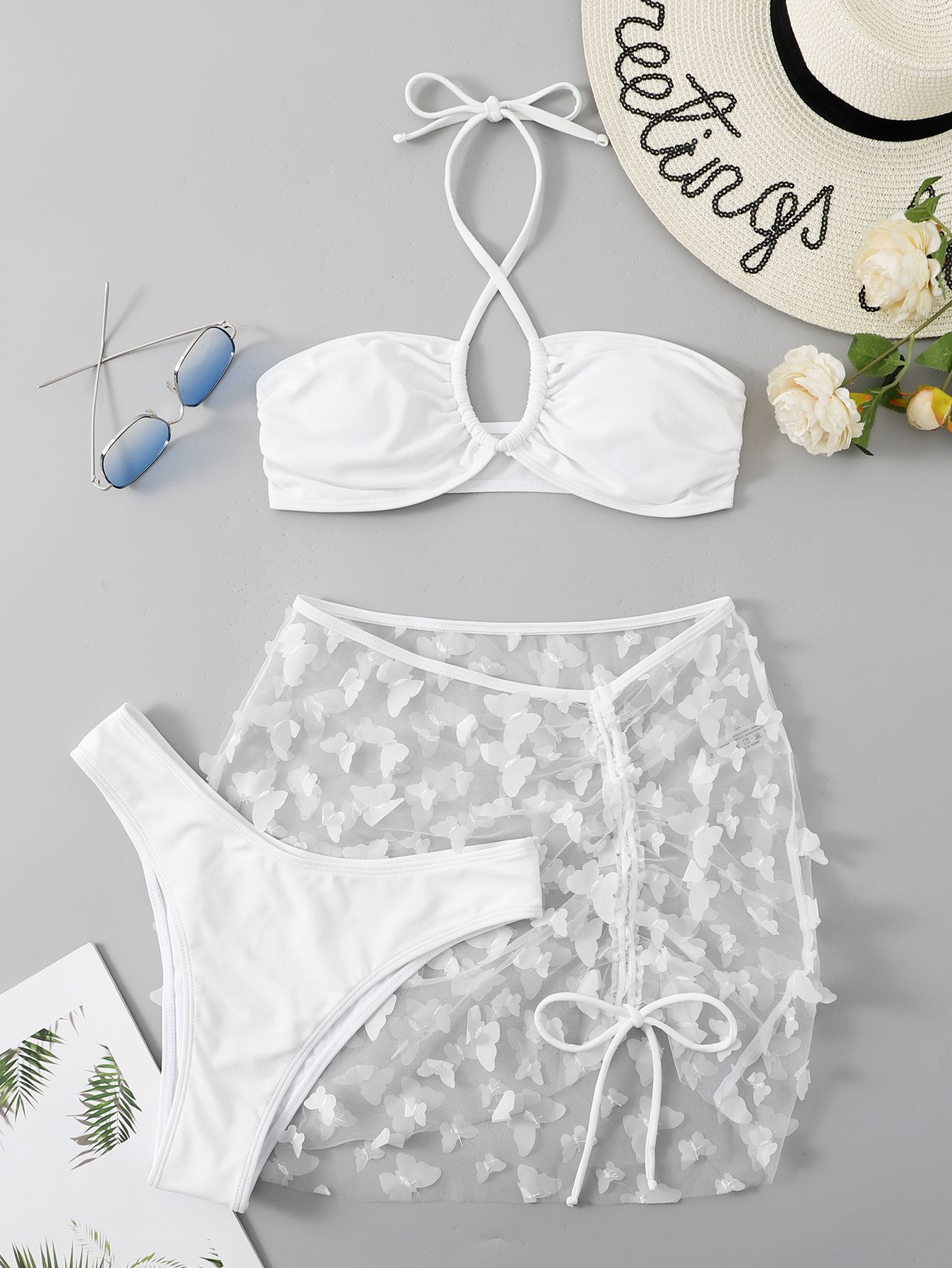 유럽과 미국의 국경 간 수영복 새로운 3 피스 비키니 단색 비키니 아마존 패션 비치 원피스 수영복 여성