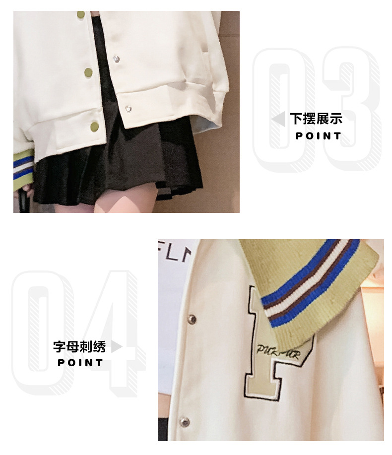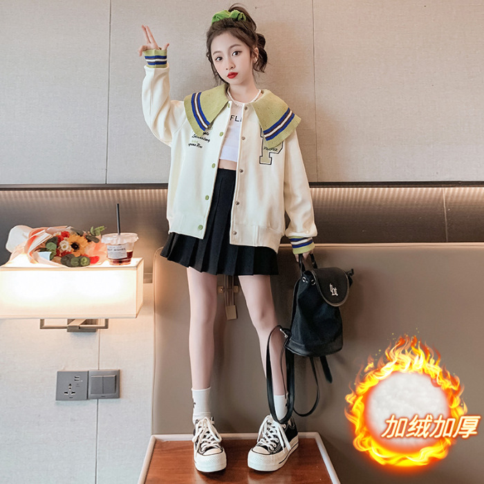 여자 기모 두꺼운 야구 세트 자켓 2024 한국 가을/겨울 세련된 외부 착용 면 재킷