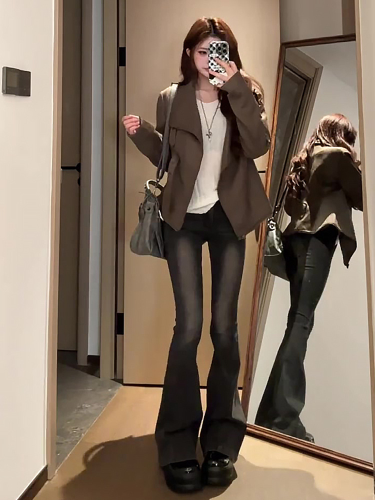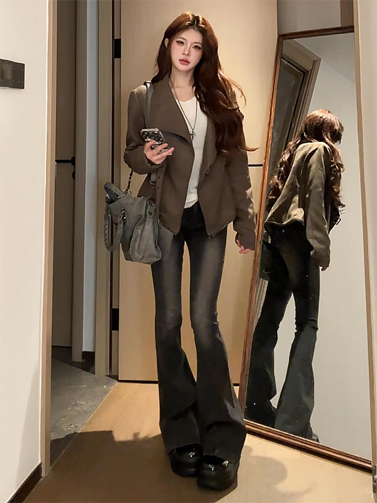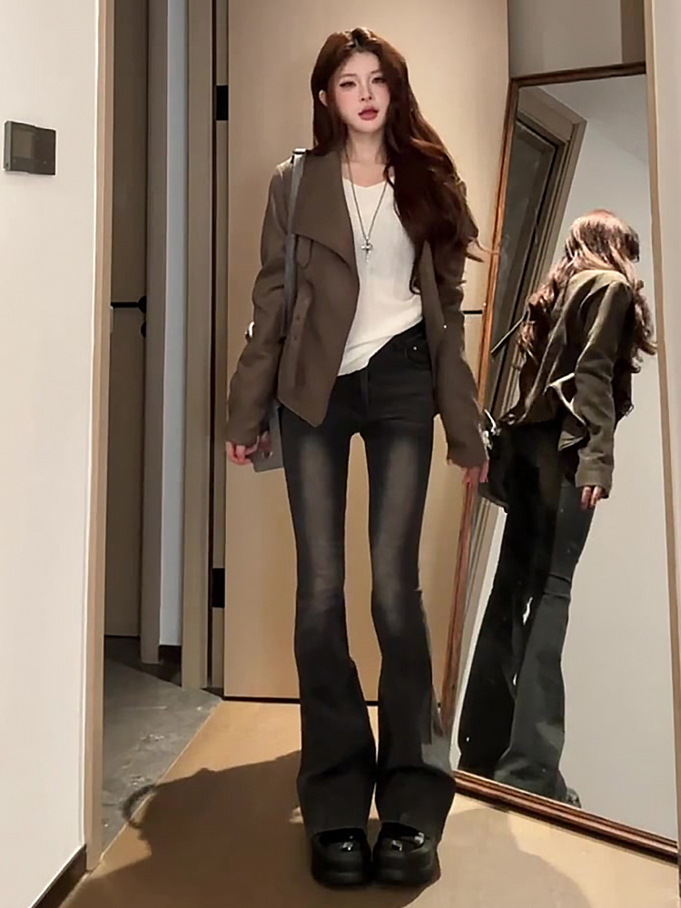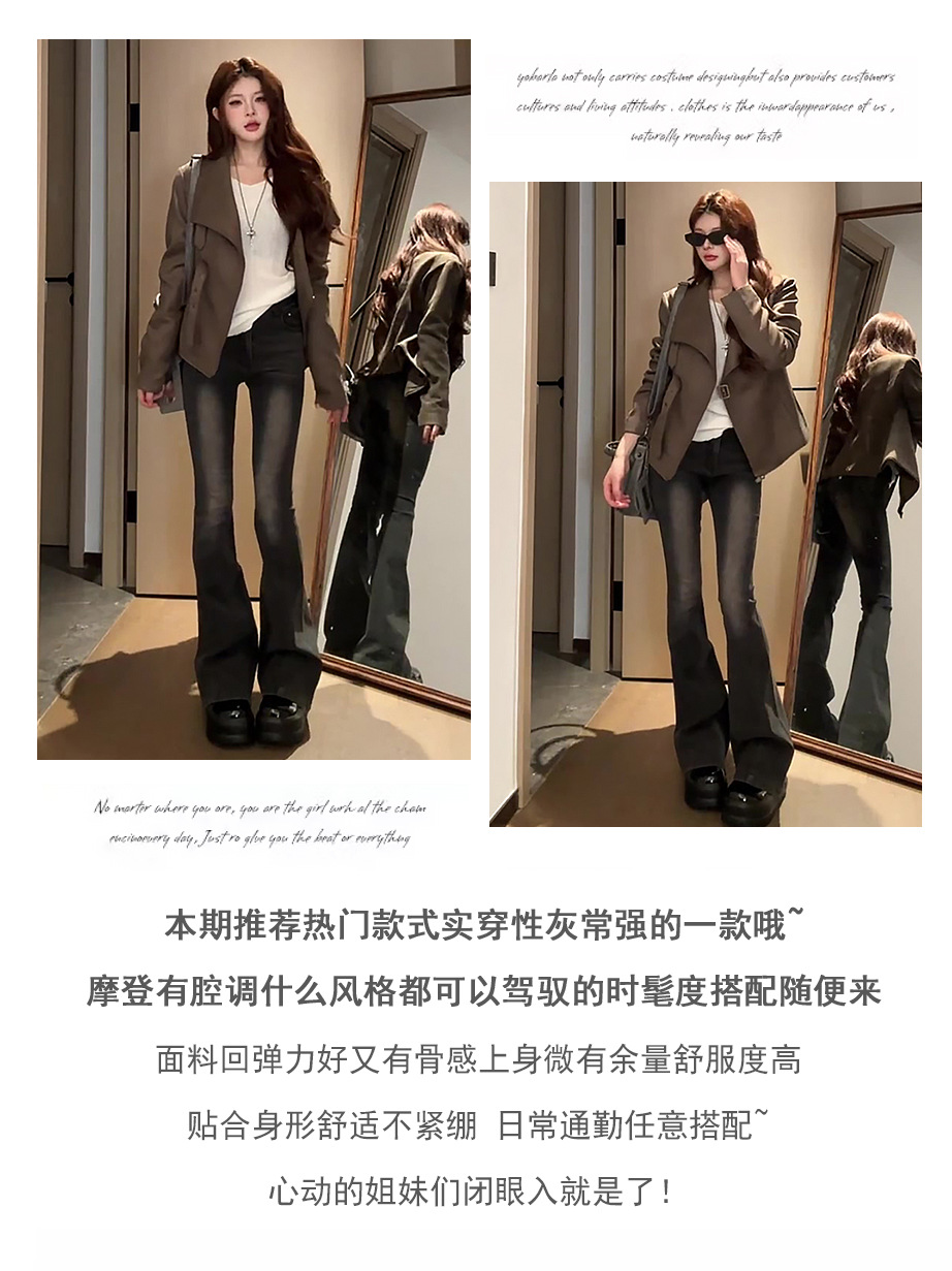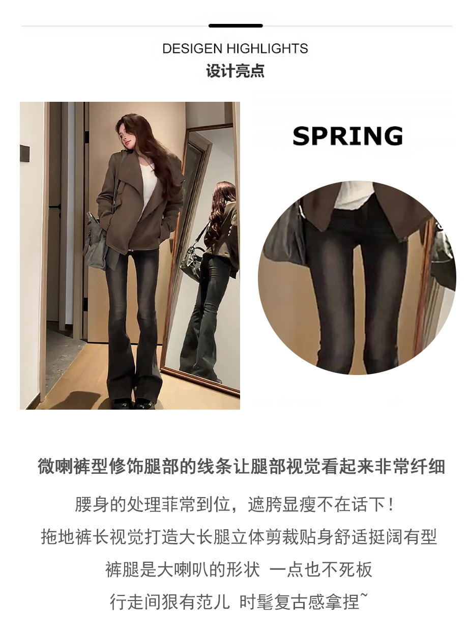 아메리칸 스타일 레트로 스파이스 소녀 블랙 그레이 하이 허리 마이크로 핏 청바지 여성의 이른 가을 슬림 핏 슬리밍 올 매치 호스 슈 롱 바지