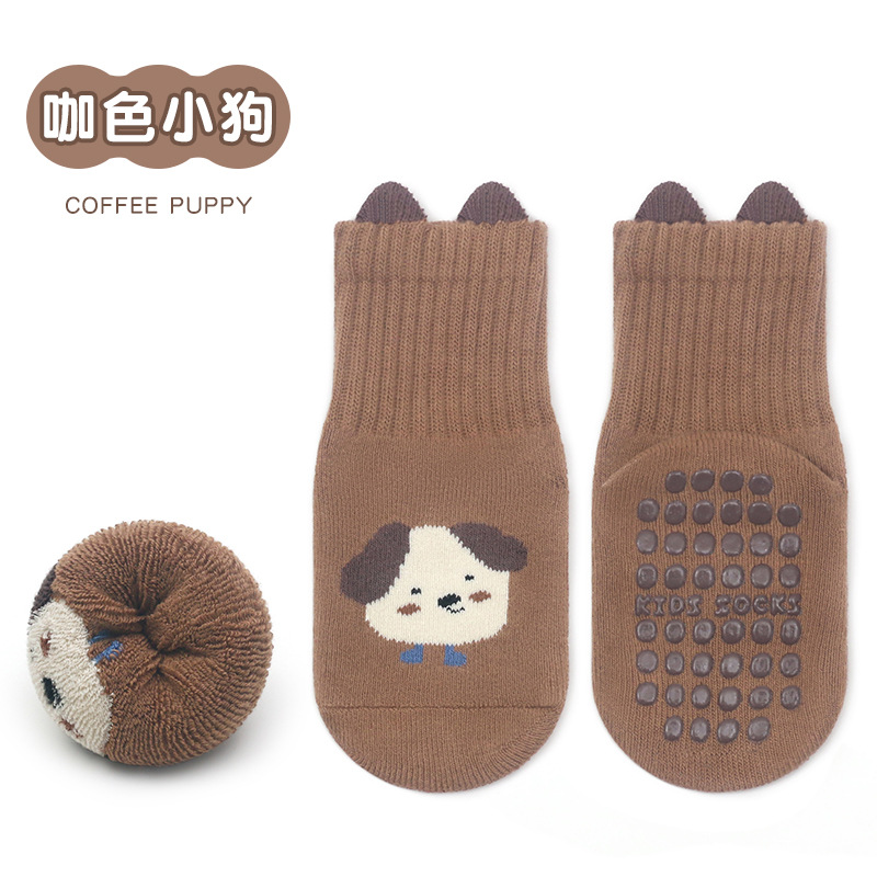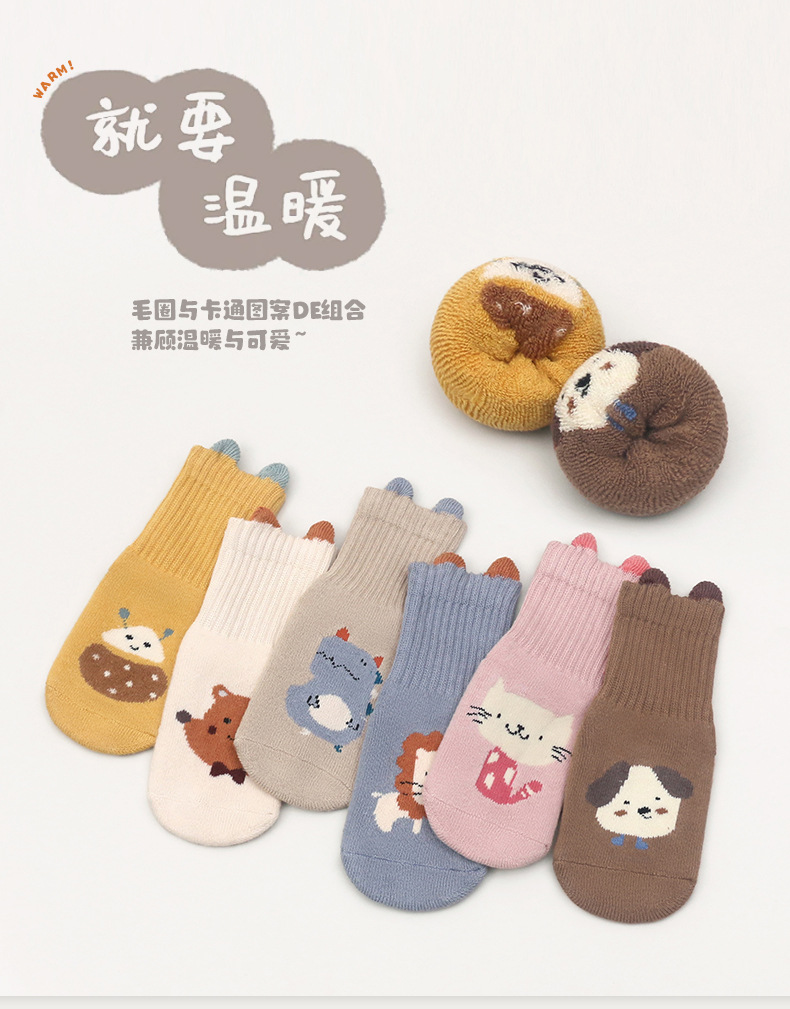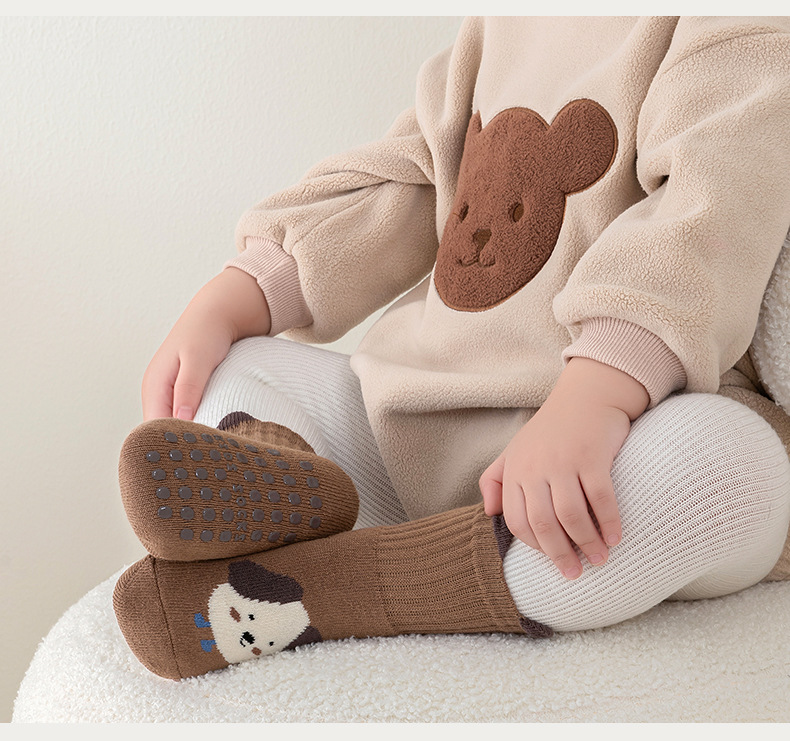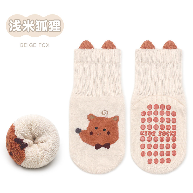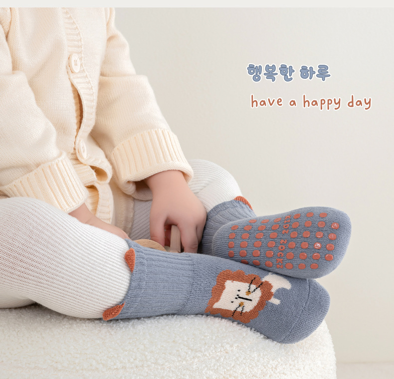 한국판 두꺼운 대형 점착 아기 양말 유아 남녀 공용 미끄럼 방지 타월 양말 고탄력 테리 양말스토어 가기