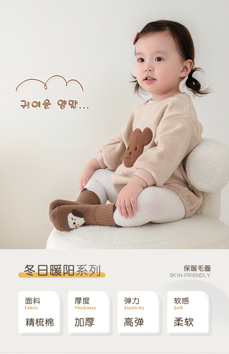 한국판 두꺼운 대형 점착 아기 양말 유아 남녀 공용 미끄럼 방지 타월 양말 고탄력 테리 양말