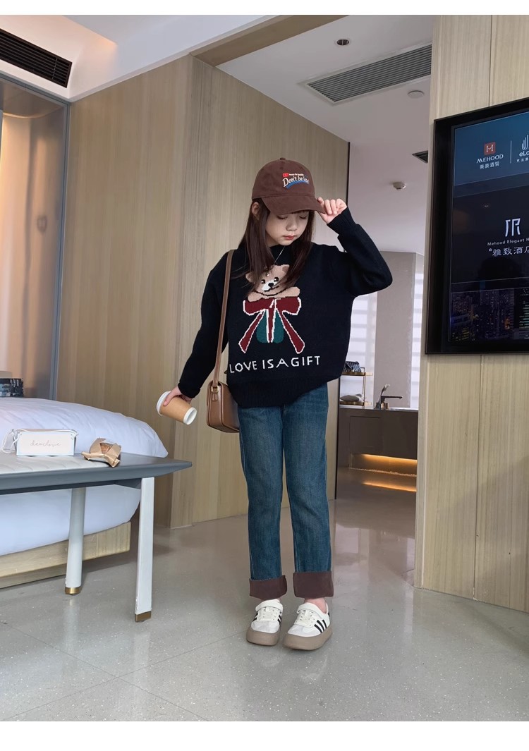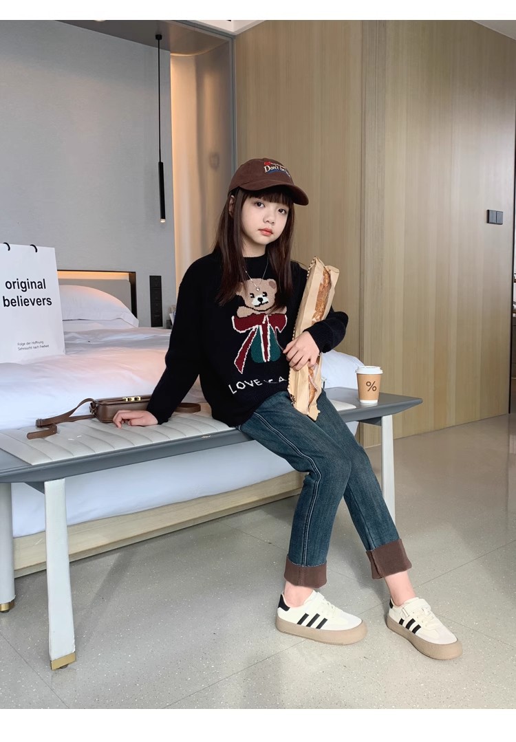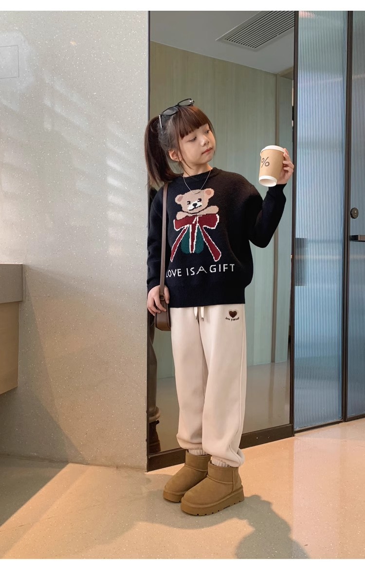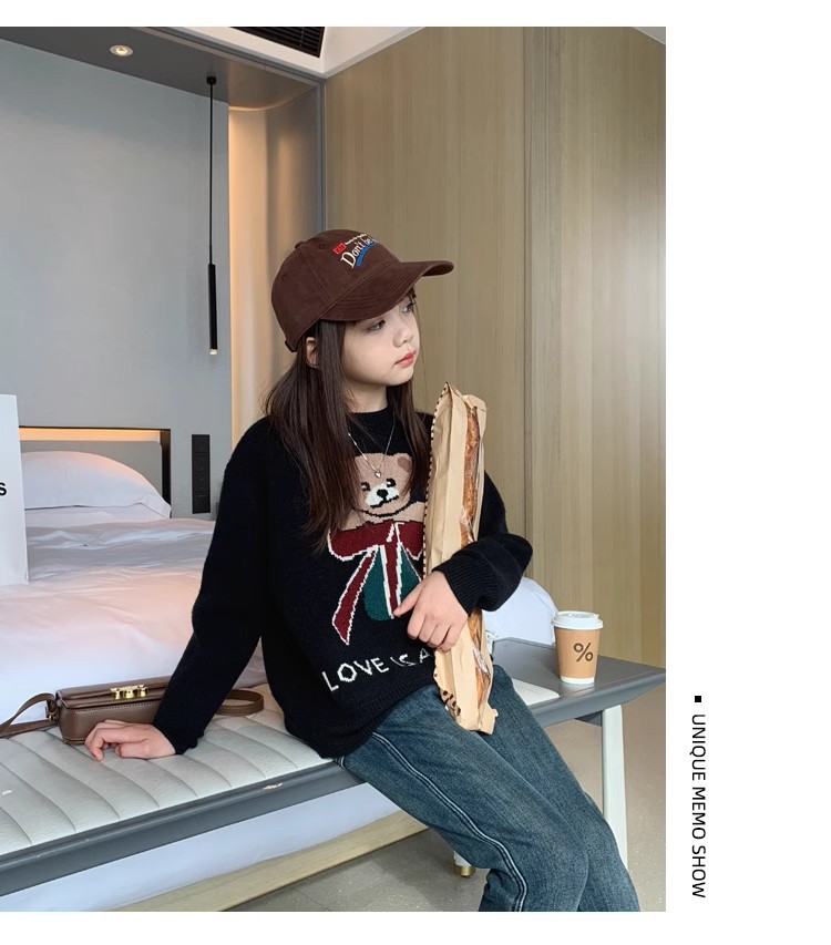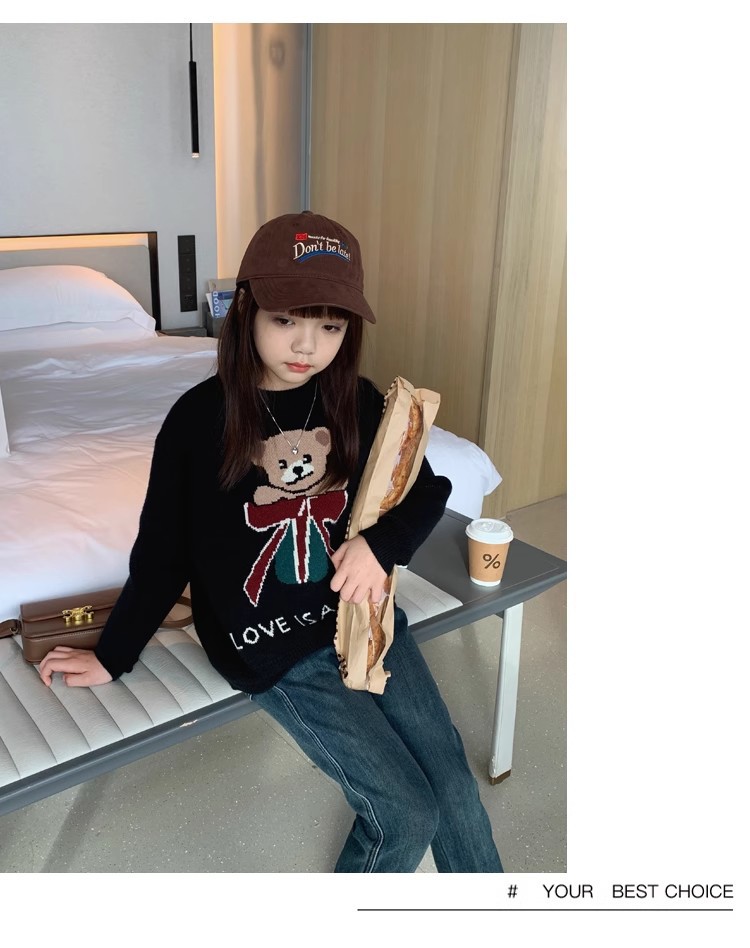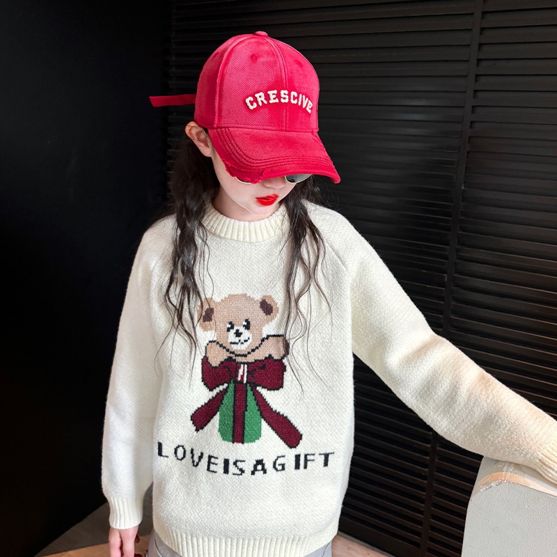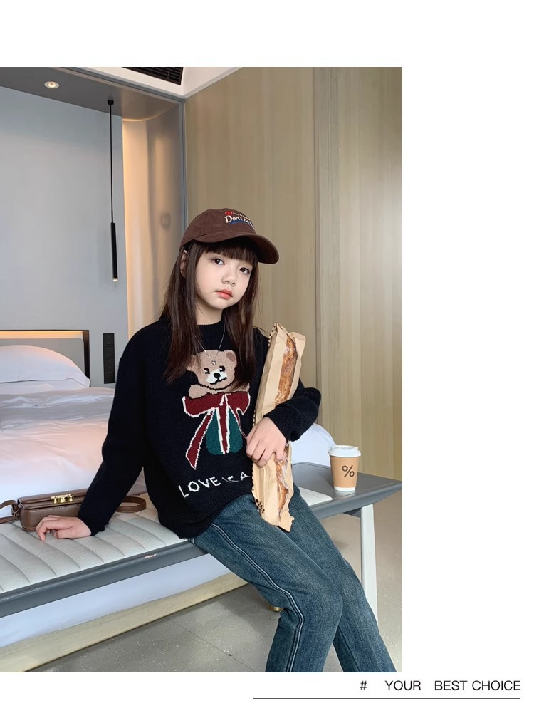 소녀 한국식 곰 스웨터 2024 겨울 새 스타일 두꺼운 따뜻한 니트 스웨터 풀오버베이스 셔츠