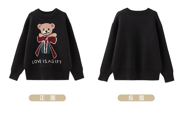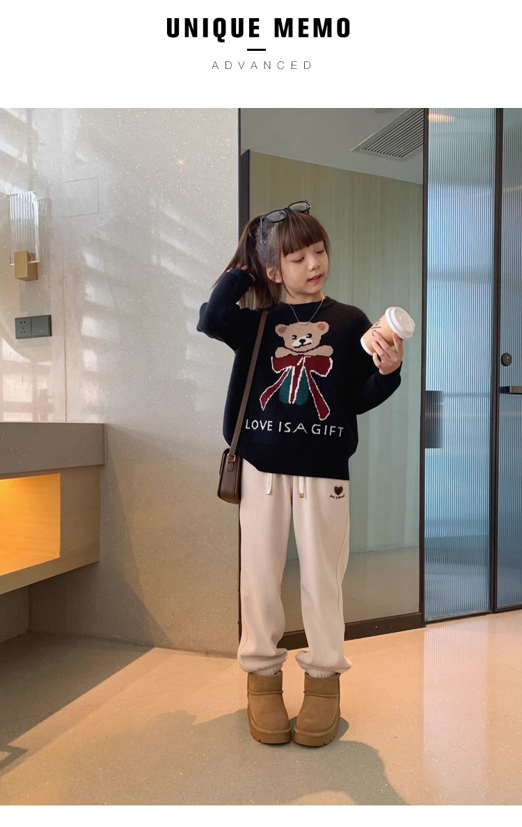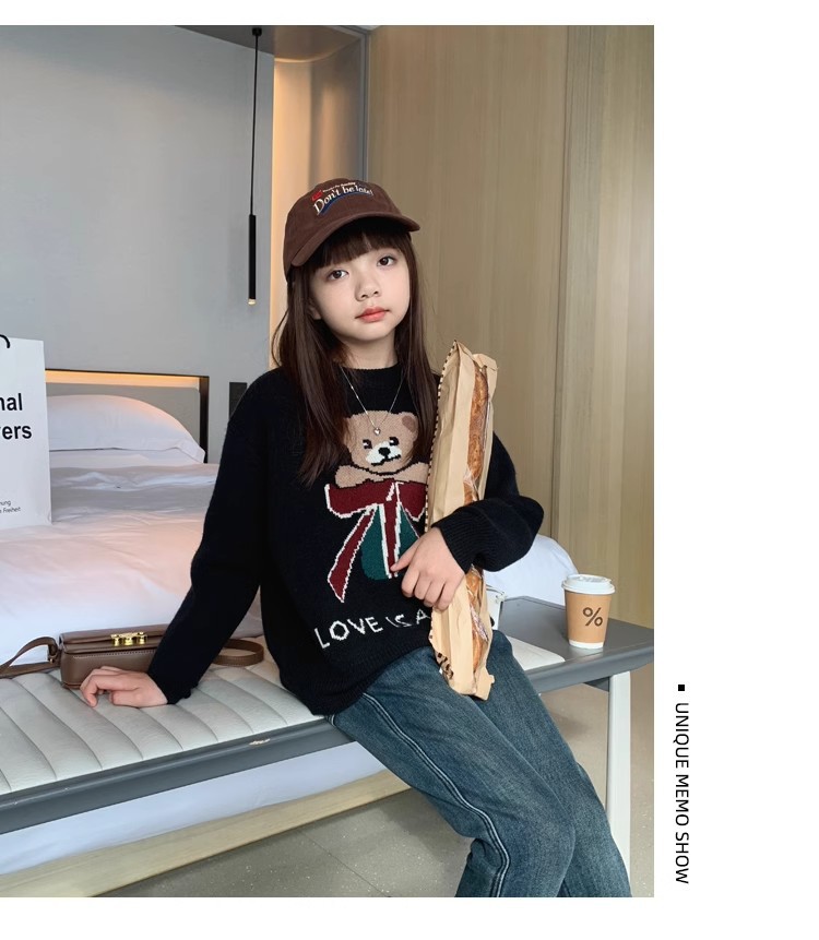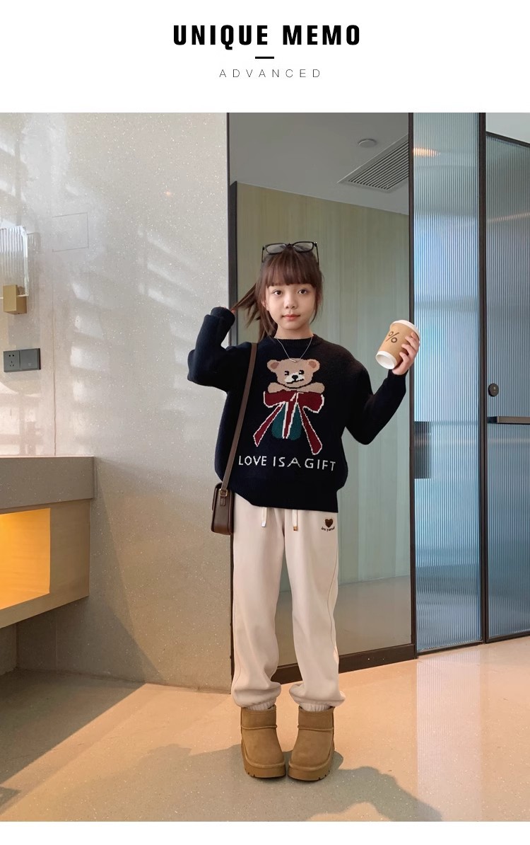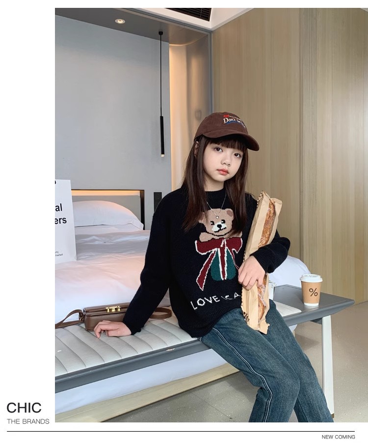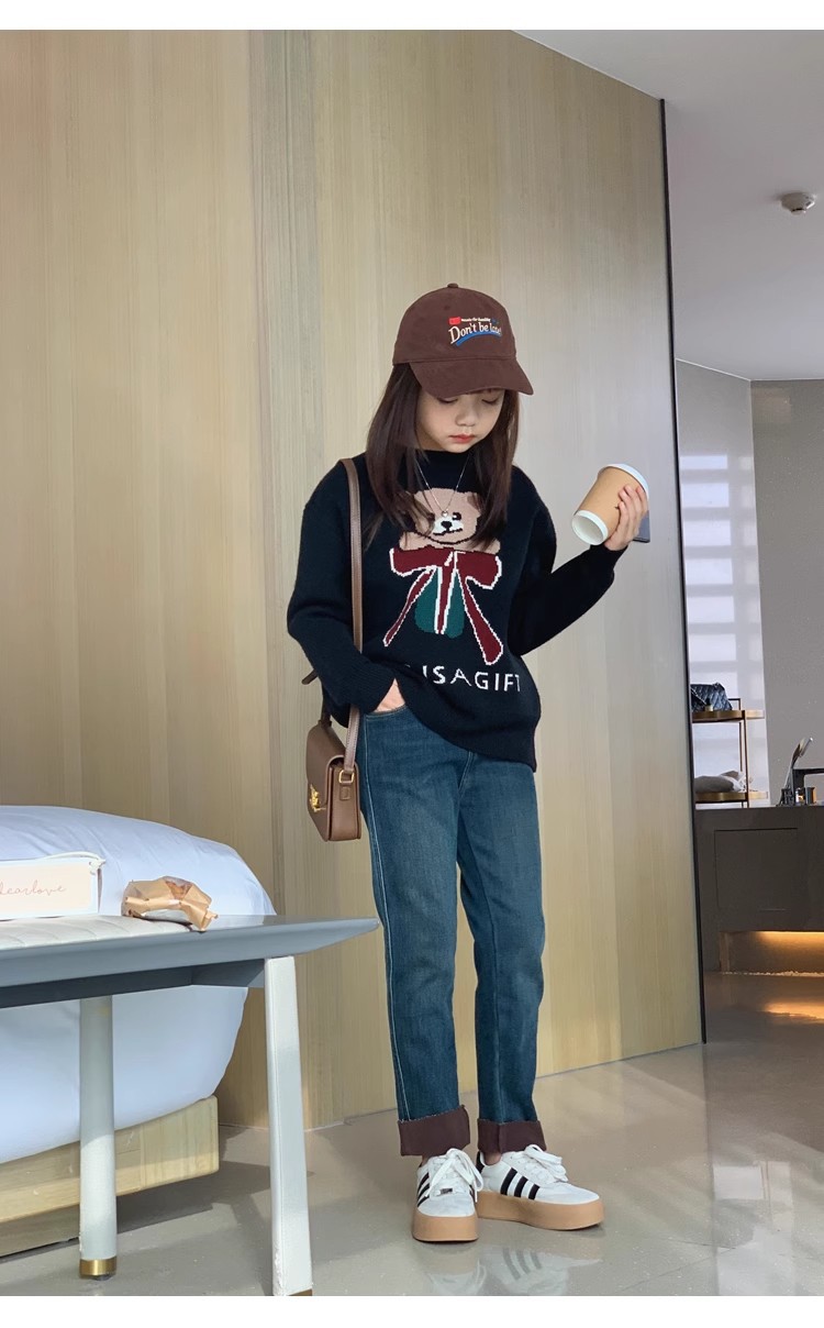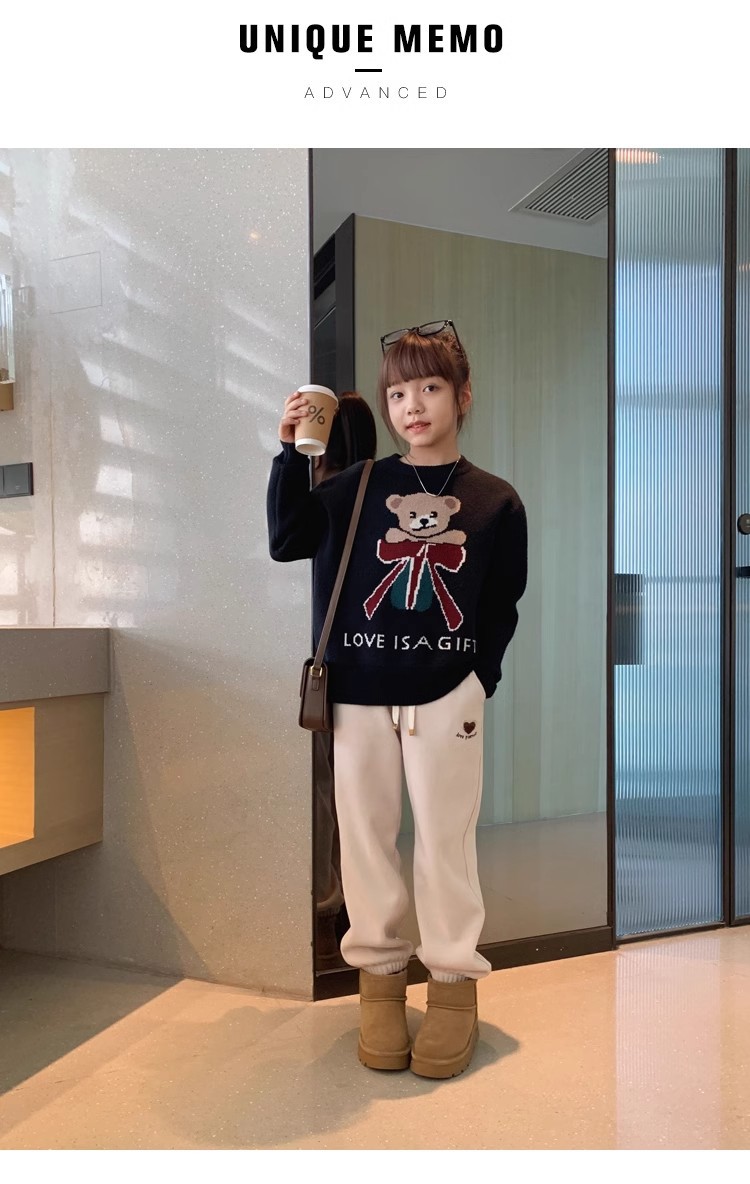 소녀 한국식 곰 스웨터 2024 겨울 새 스타일 두꺼운 따뜻한 니트 스웨터 풀오버베이스 셔츠스토어 가기
