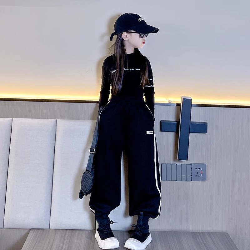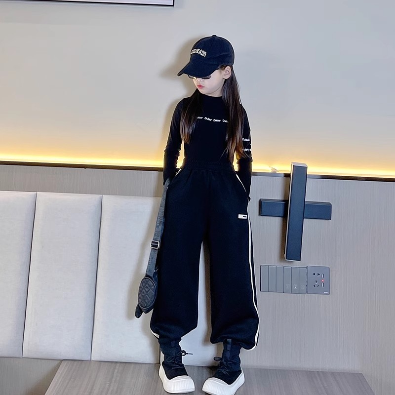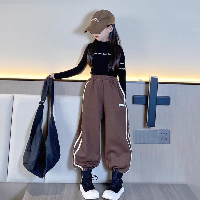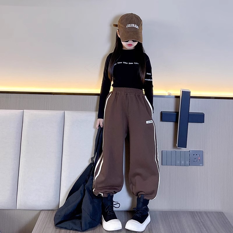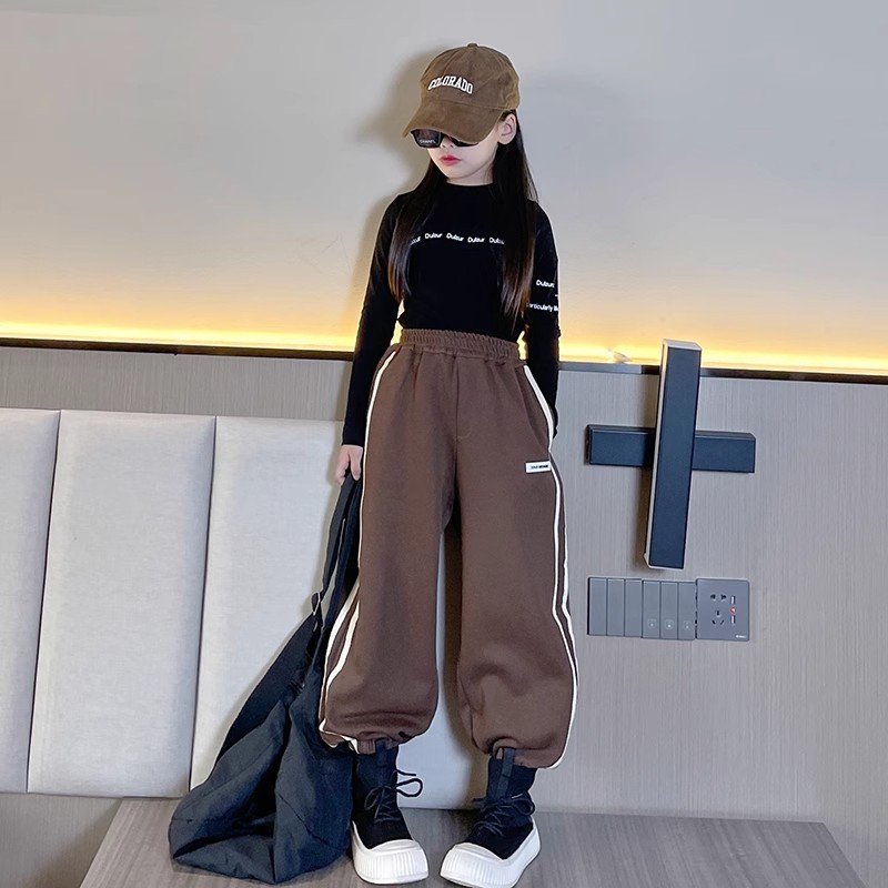 소녀 바지 가을과 겨울 2024 새로운 어린이 겨울 바지 느슨한 소녀 기모 두꺼운 발 바지