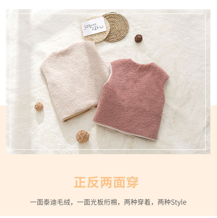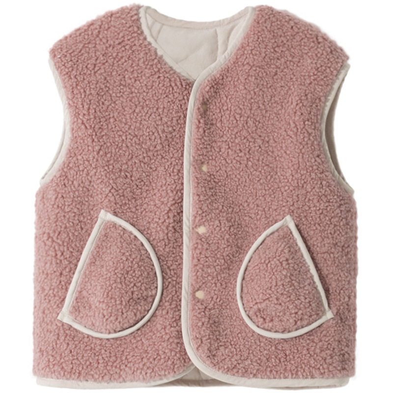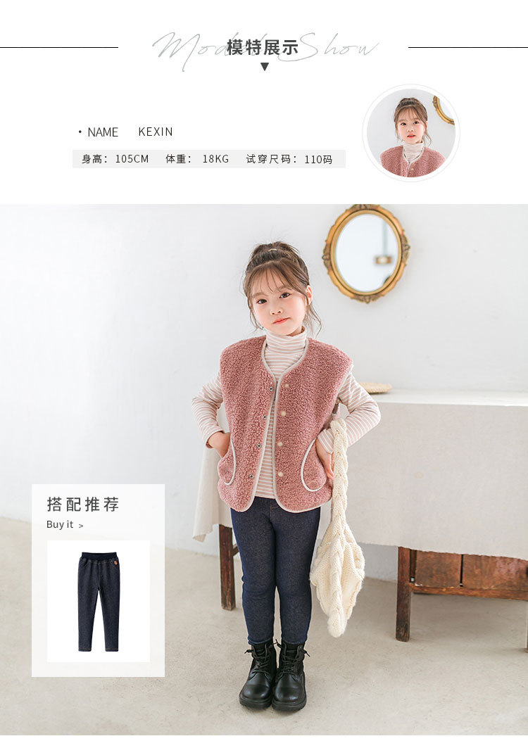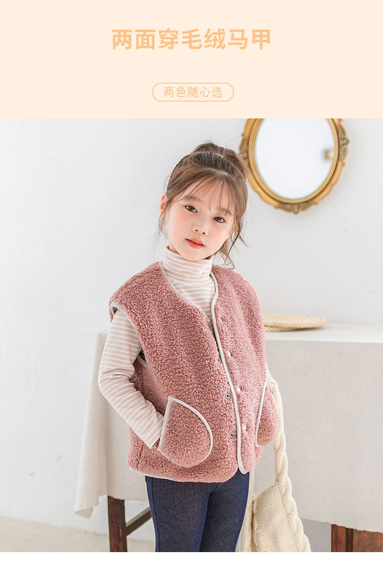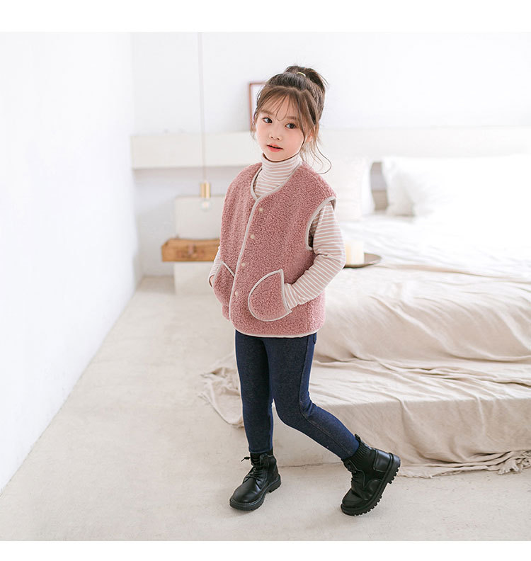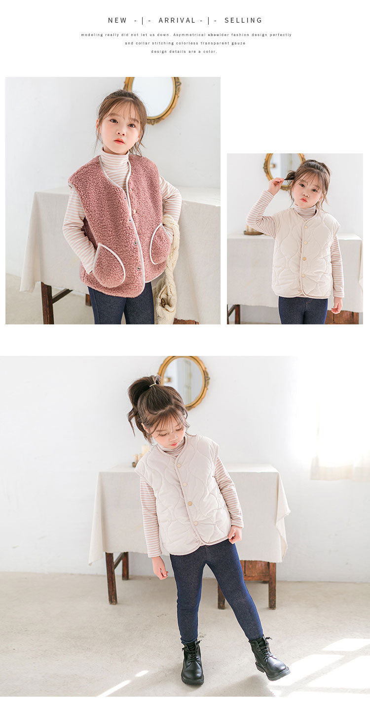 새로운 한국식 따뜻한 안쪽 양가죽 여성 아동복 유아복 기모 패딩 어린이 조끼 가을과 겨울