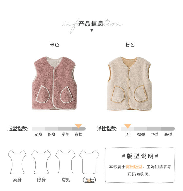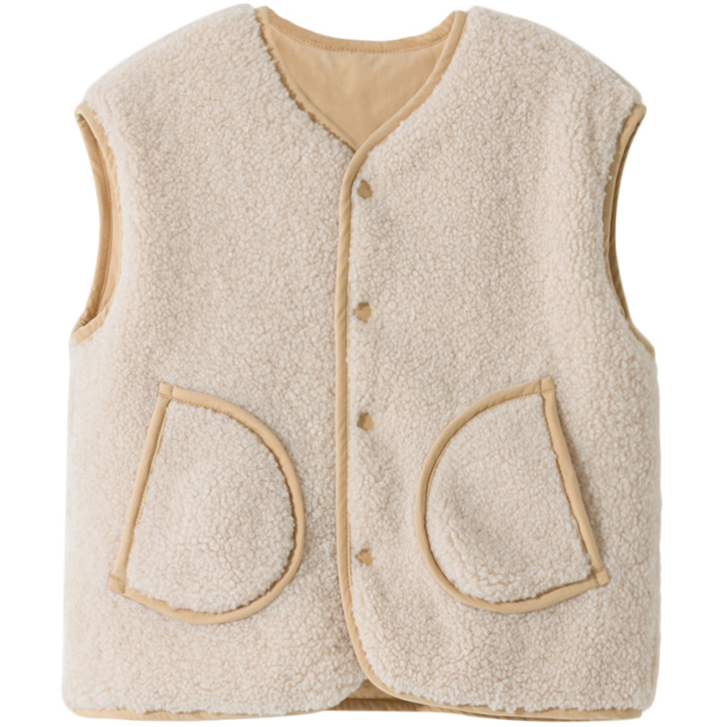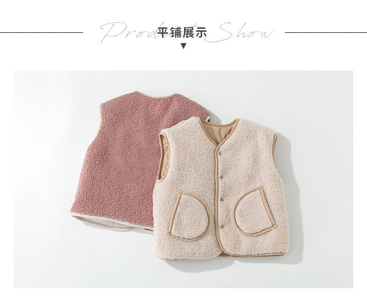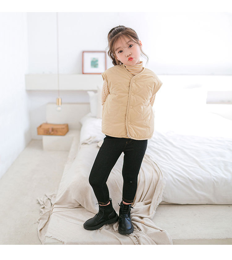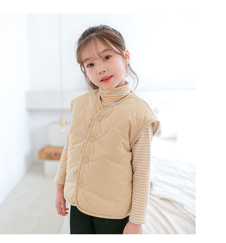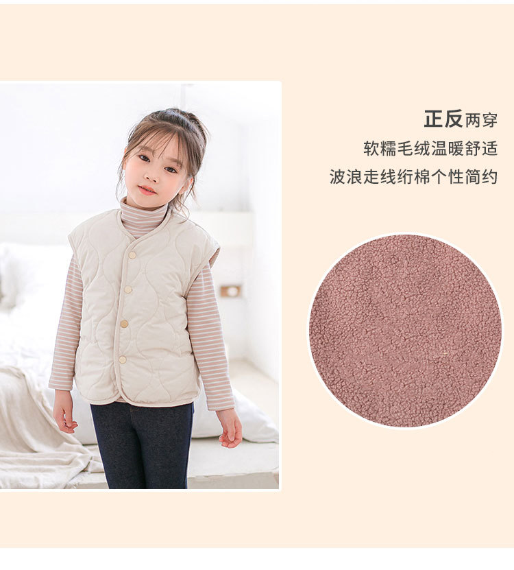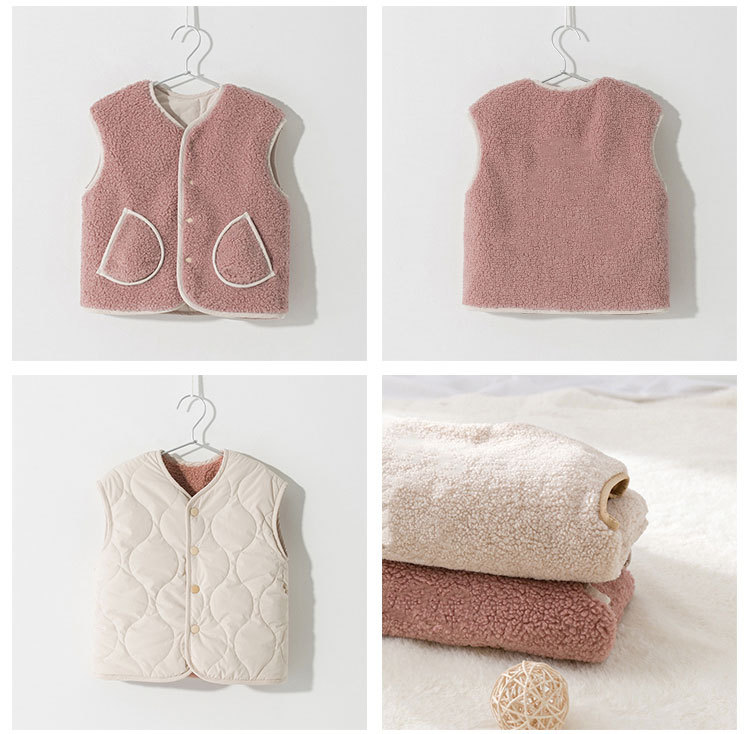 새로운 한국식 따뜻한 안쪽 양가죽 여성 아동복 유아복 기모 패딩 어린이 조끼 가을과 겨울