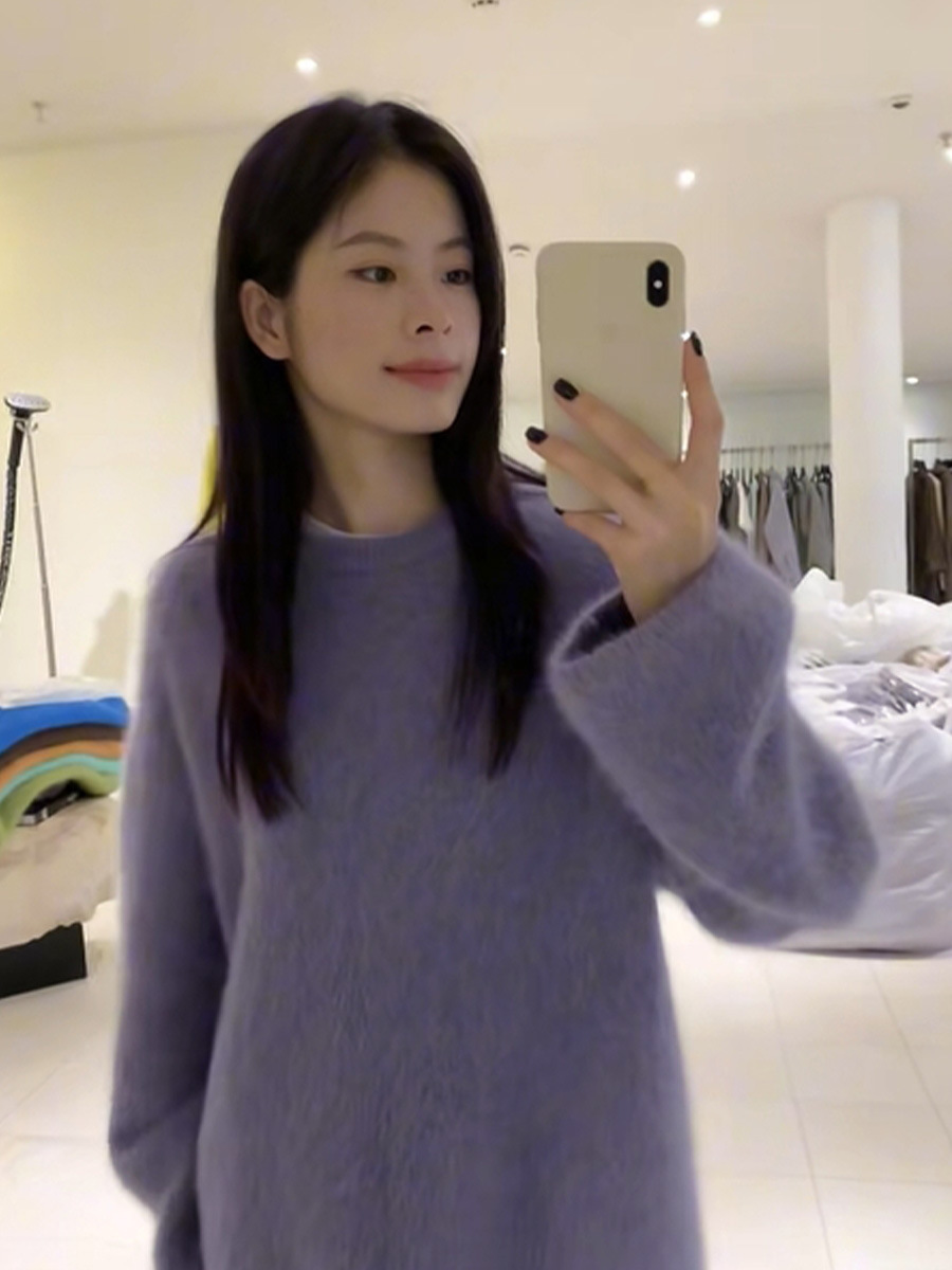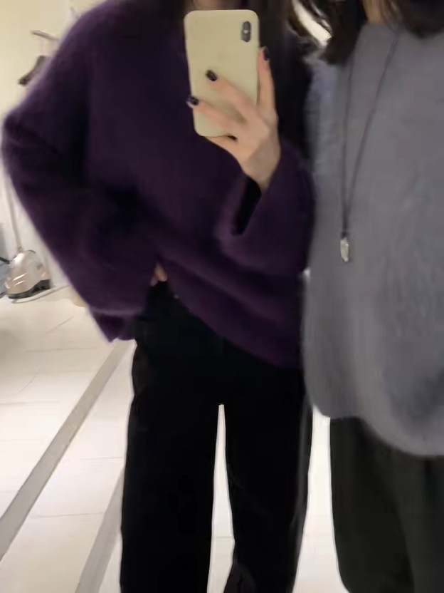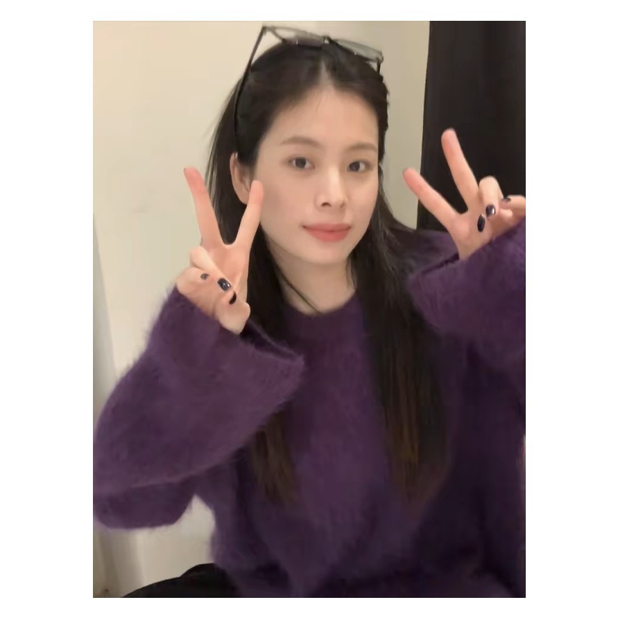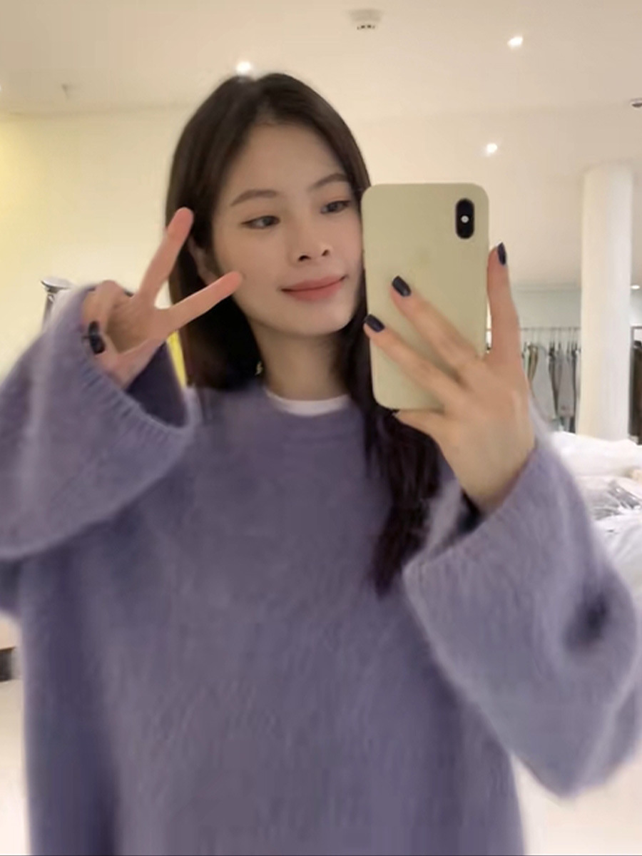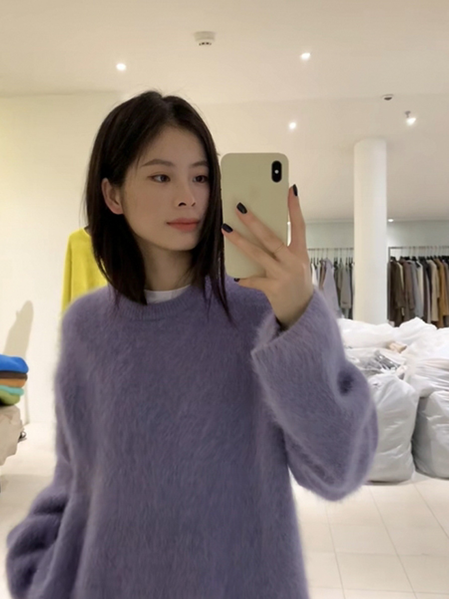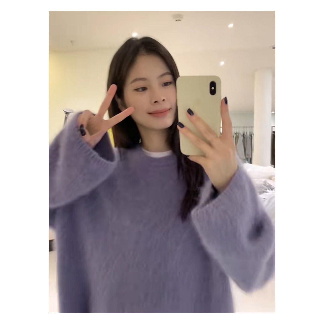 보라색 너구리 벨벳 스웨터 여성의 가을과 겨울 게으른 부드러운 왁스 루즈 아우터 착용 고급 니트 탑스토어 가기