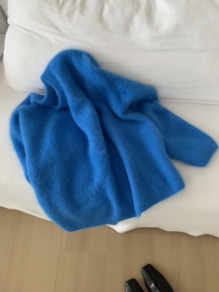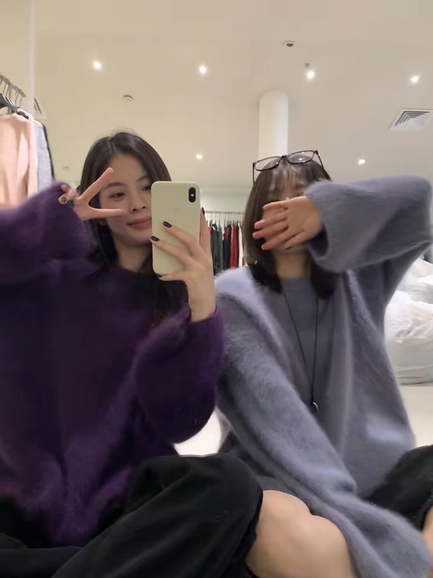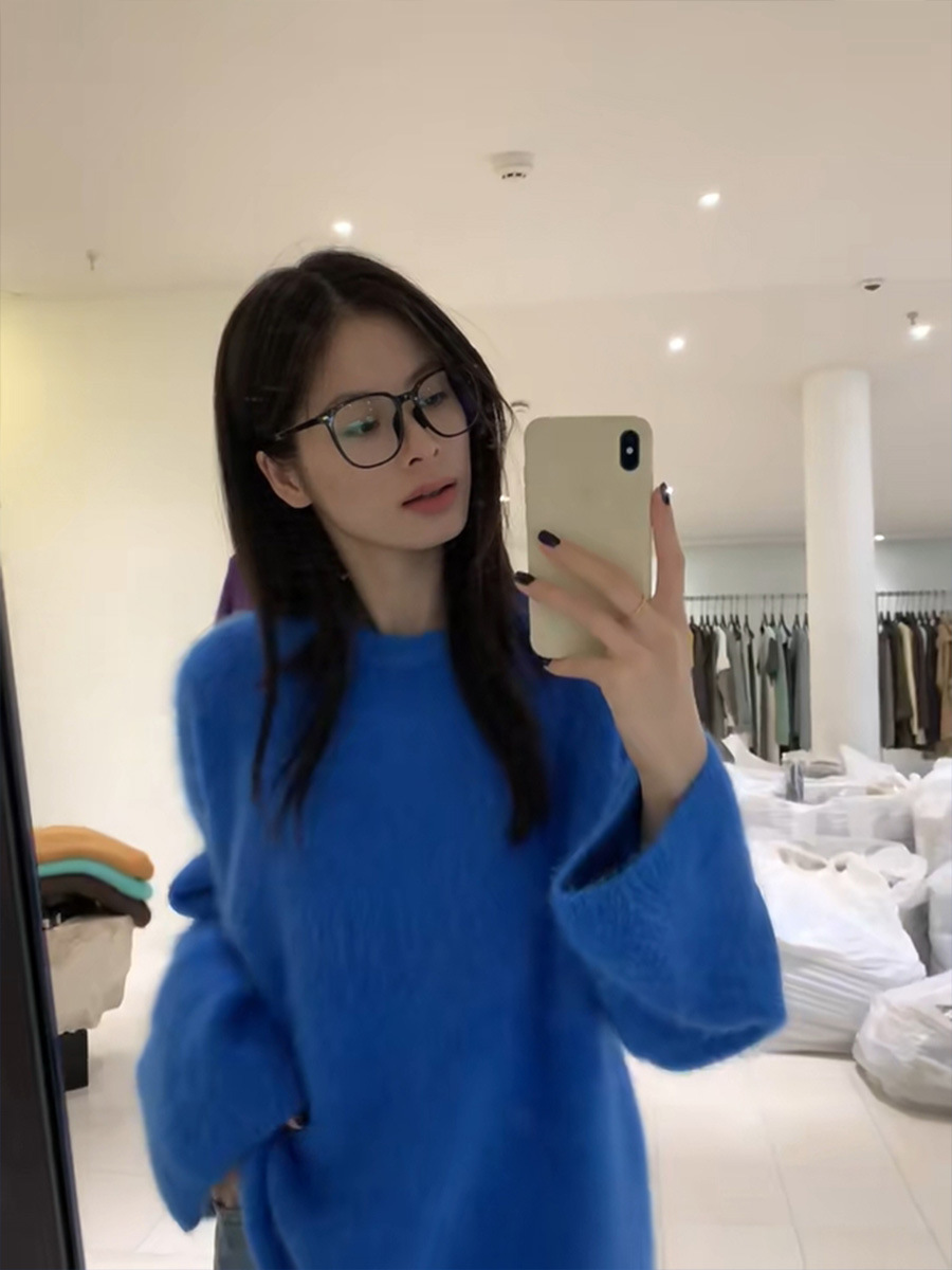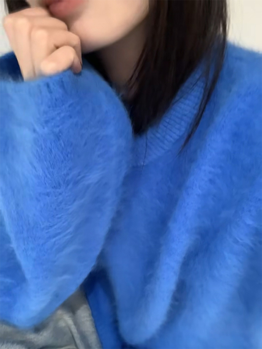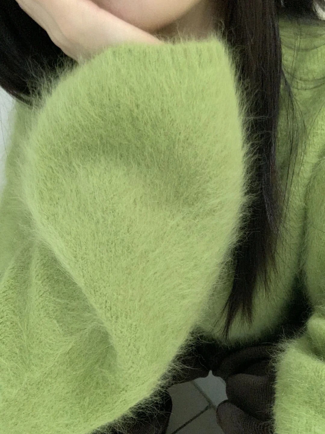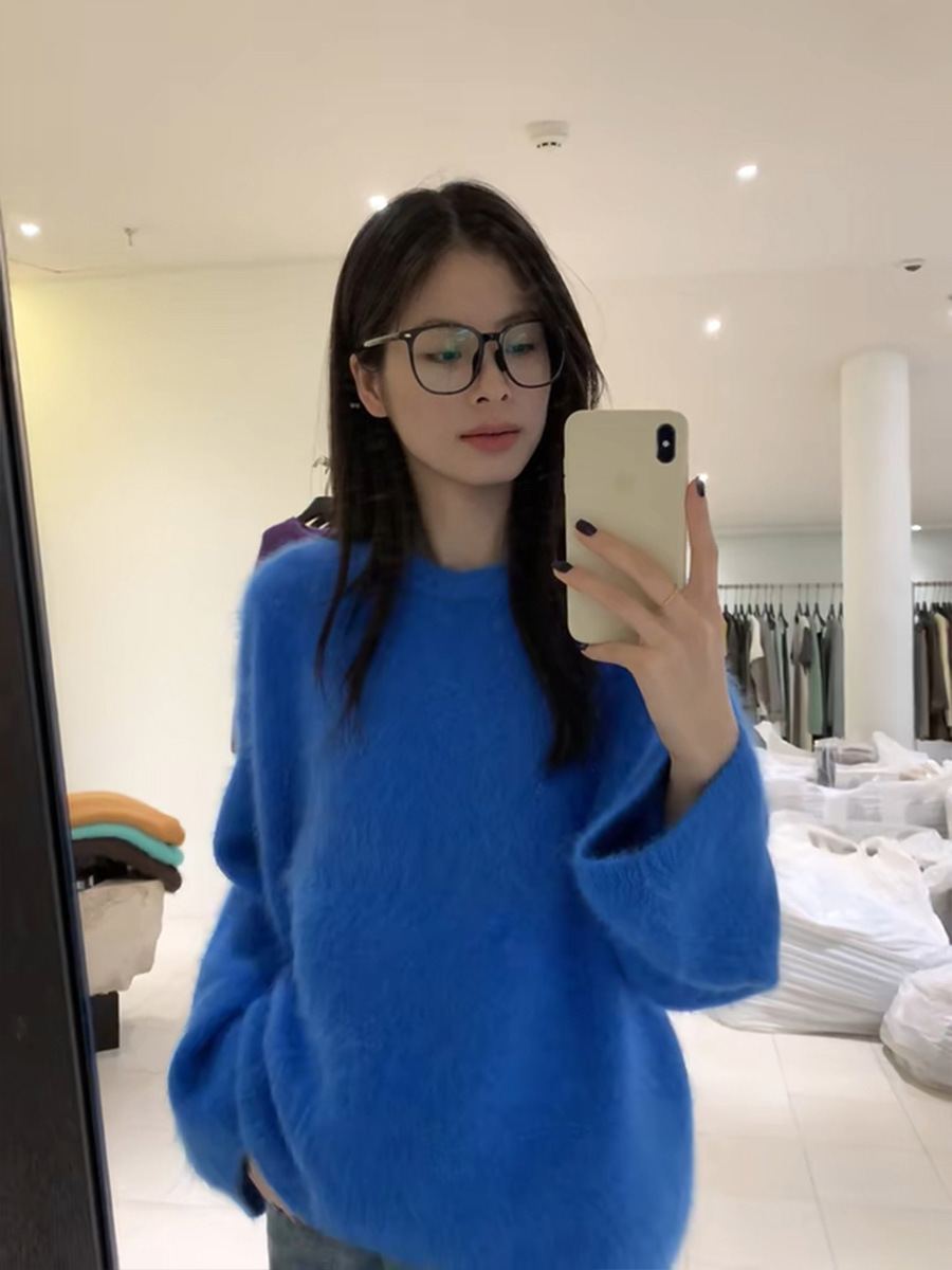 보라색 너구리 벨벳 스웨터 여성의 가을과 겨울 게으른 부드러운 왁스 루즈 아우터 착용 고급 니트 탑스토어 가기