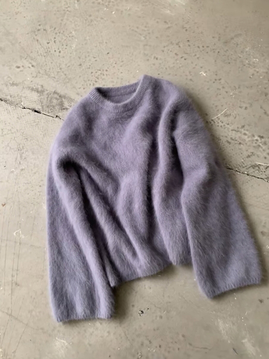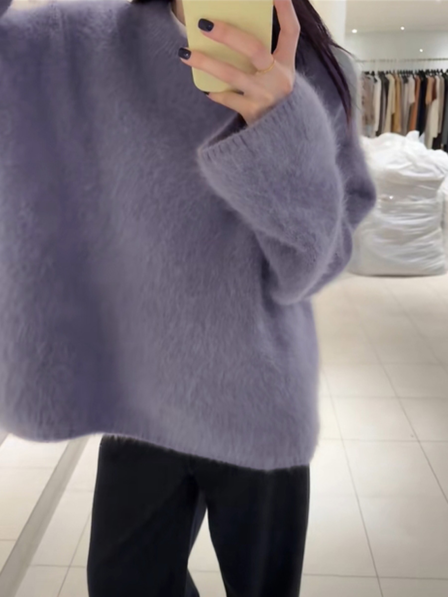 보라색 너구리 벨벳 스웨터 여성의 가을과 겨울 게으른 부드러운 왁스 루즈 아우터 착용 고급 니트 탑