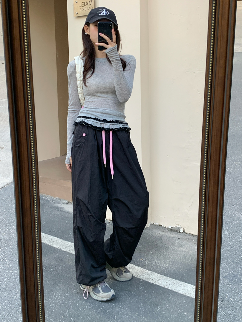 GAGD 복숭아 색상 기모 충전 스키 바지 겨울 야외 등산 느슨한 도구 넓은 다리 캐주얼 바지스토어 가기