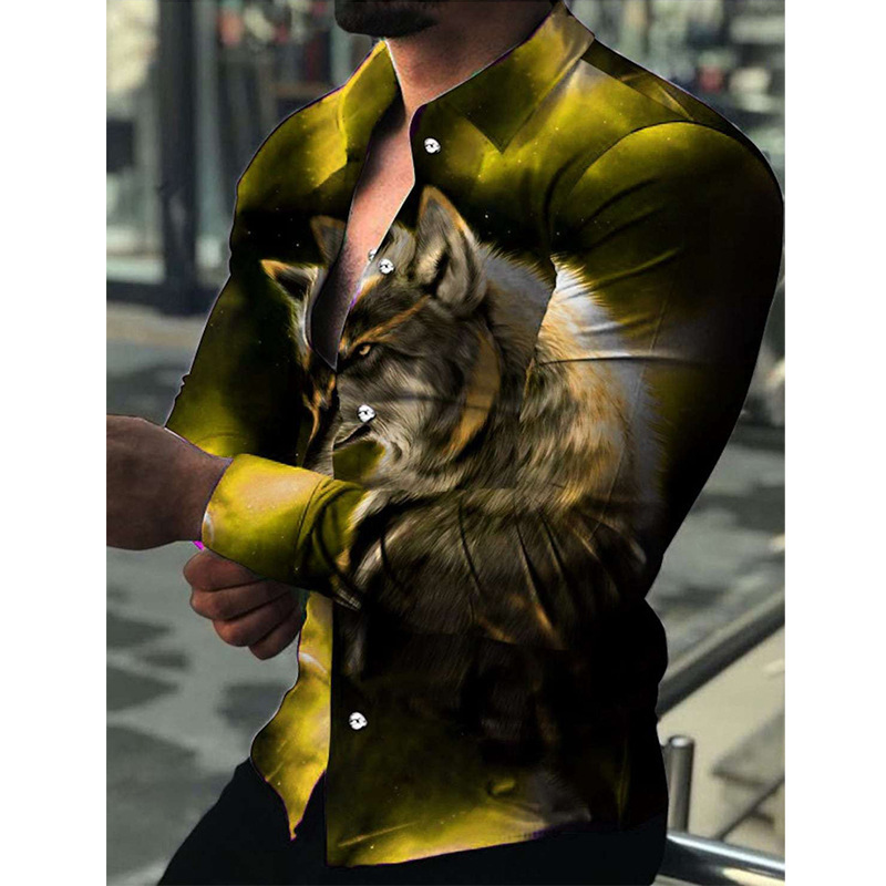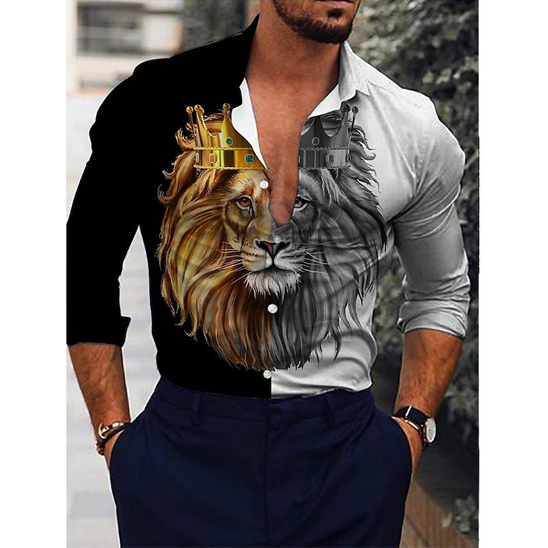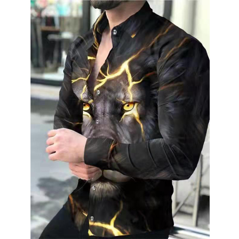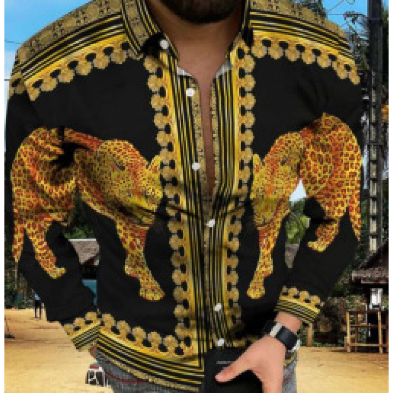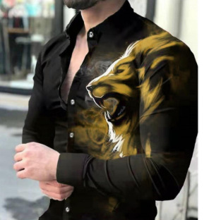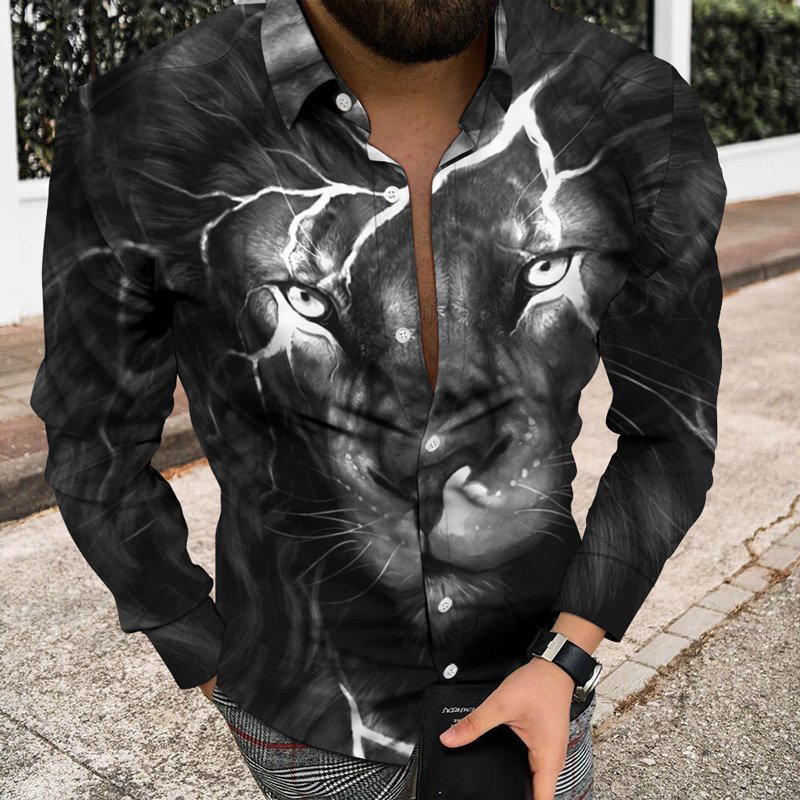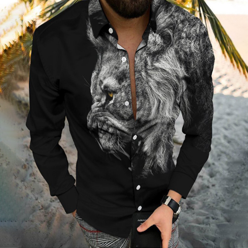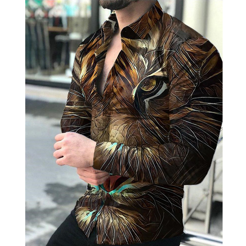 봄과 가을을위한 국경 간 대외 무역 유럽과 미국 남성 카디건 남성 동물 인쇄 캐주얼 셔츠 카디건 긴 소매 셔츠