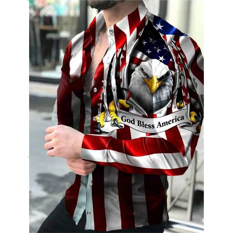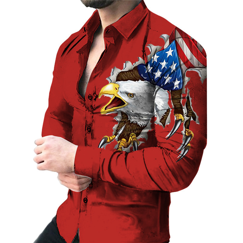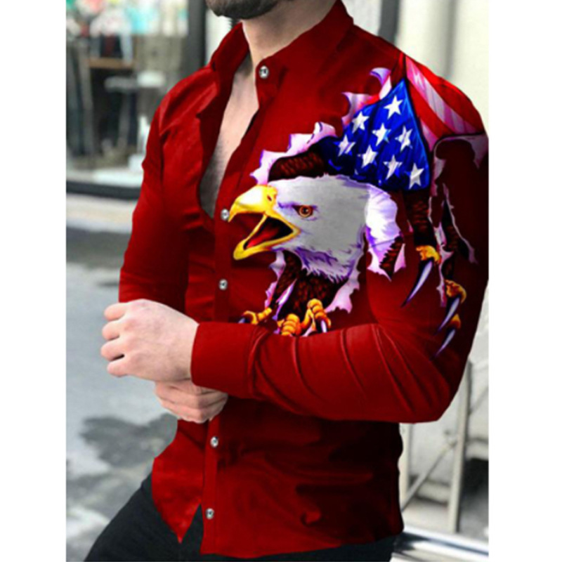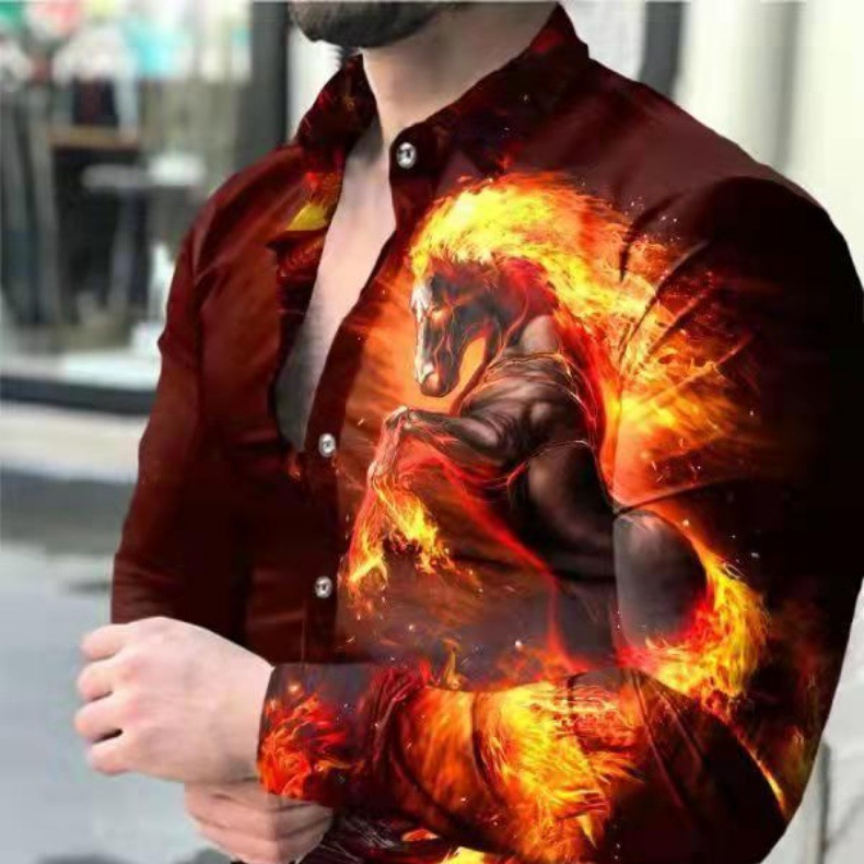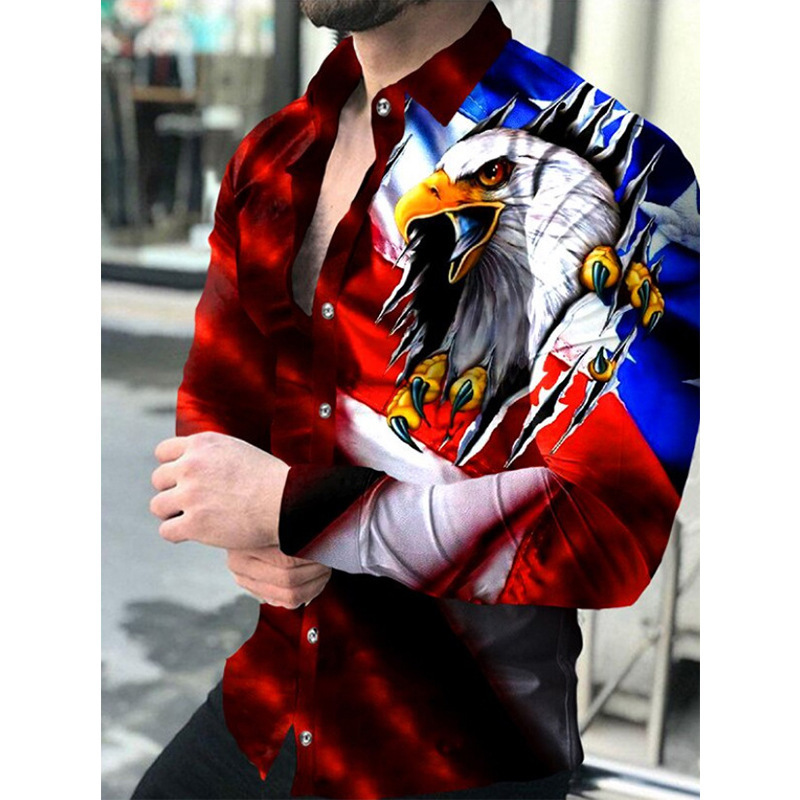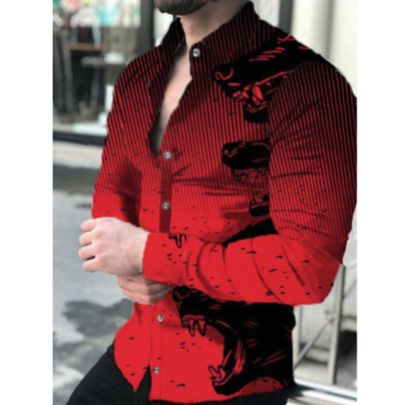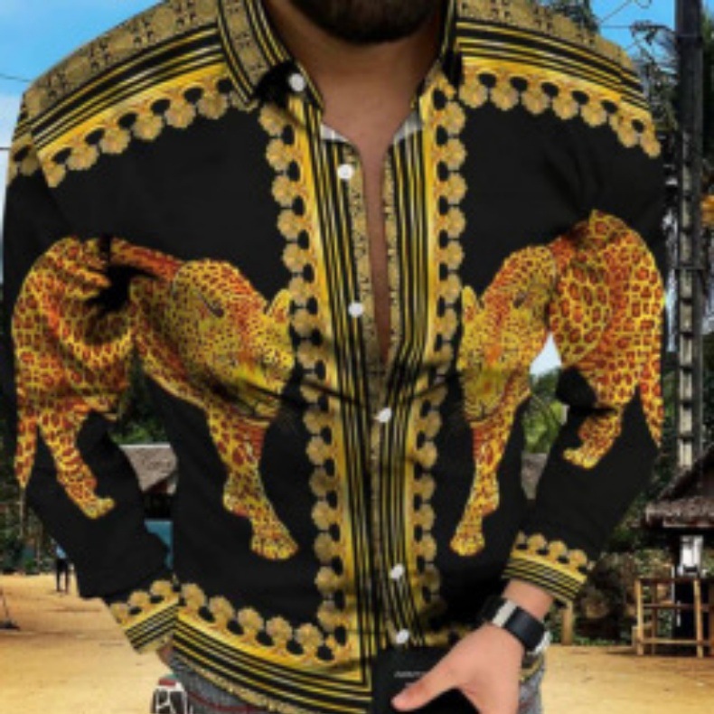 봄과 가을을위한 국경 간 대외 무역 유럽과 미국 남성 카디건 남성 동물 인쇄 캐주얼 셔츠 카디건 긴 소매 셔츠