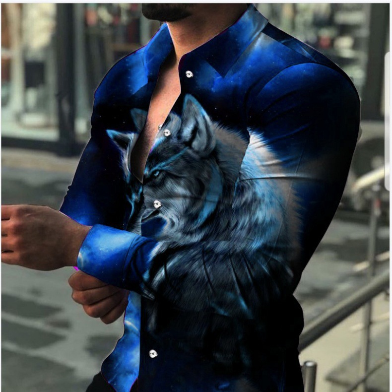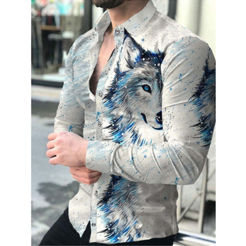 봄과 가을을위한 국경 간 대외 무역 유럽과 미국 남성 카디건 남성 동물 인쇄 캐주얼 셔츠 카디건 긴 소매 셔츠스토어 가기