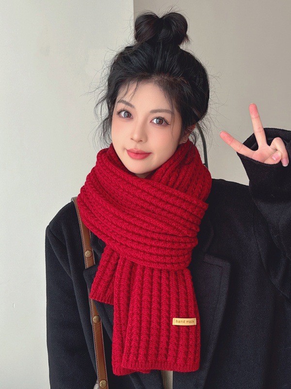 한국 스타일 니트 울 레드 스카프 여자 겨울 2024 새로운 올매치 고급 따뜻한 유지 커플 학생 스카프