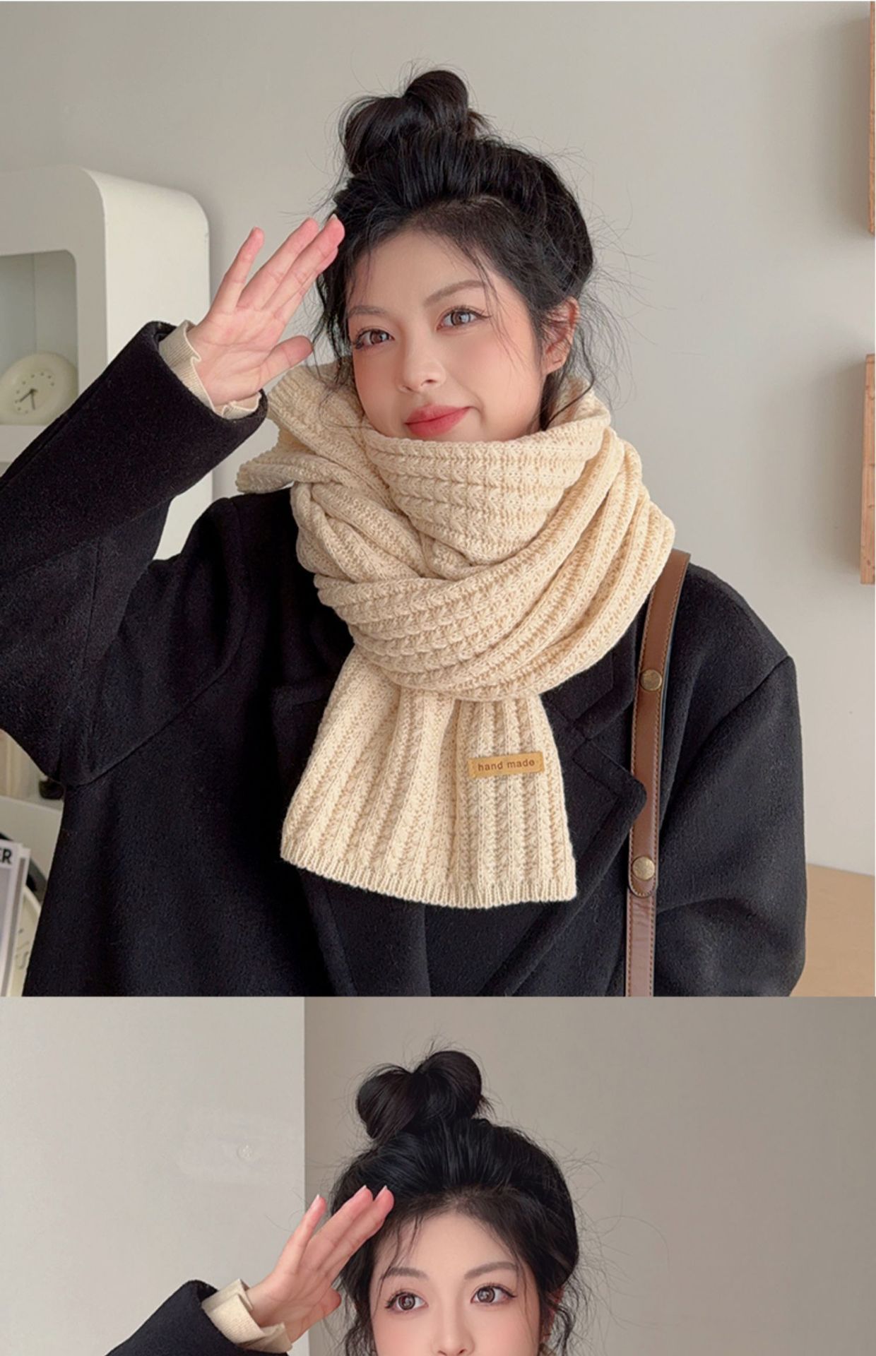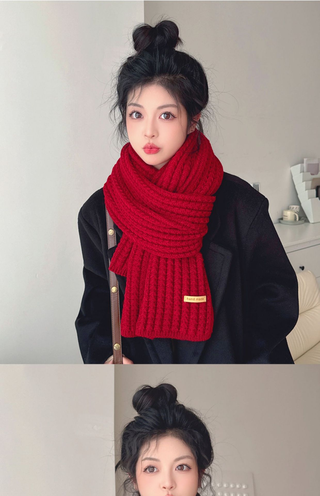 한국 스타일 니트 울 레드 스카프 여자 겨울 2024 새로운 올매치 고급 따뜻한 유지 커플 학생 스카프스토어 가기